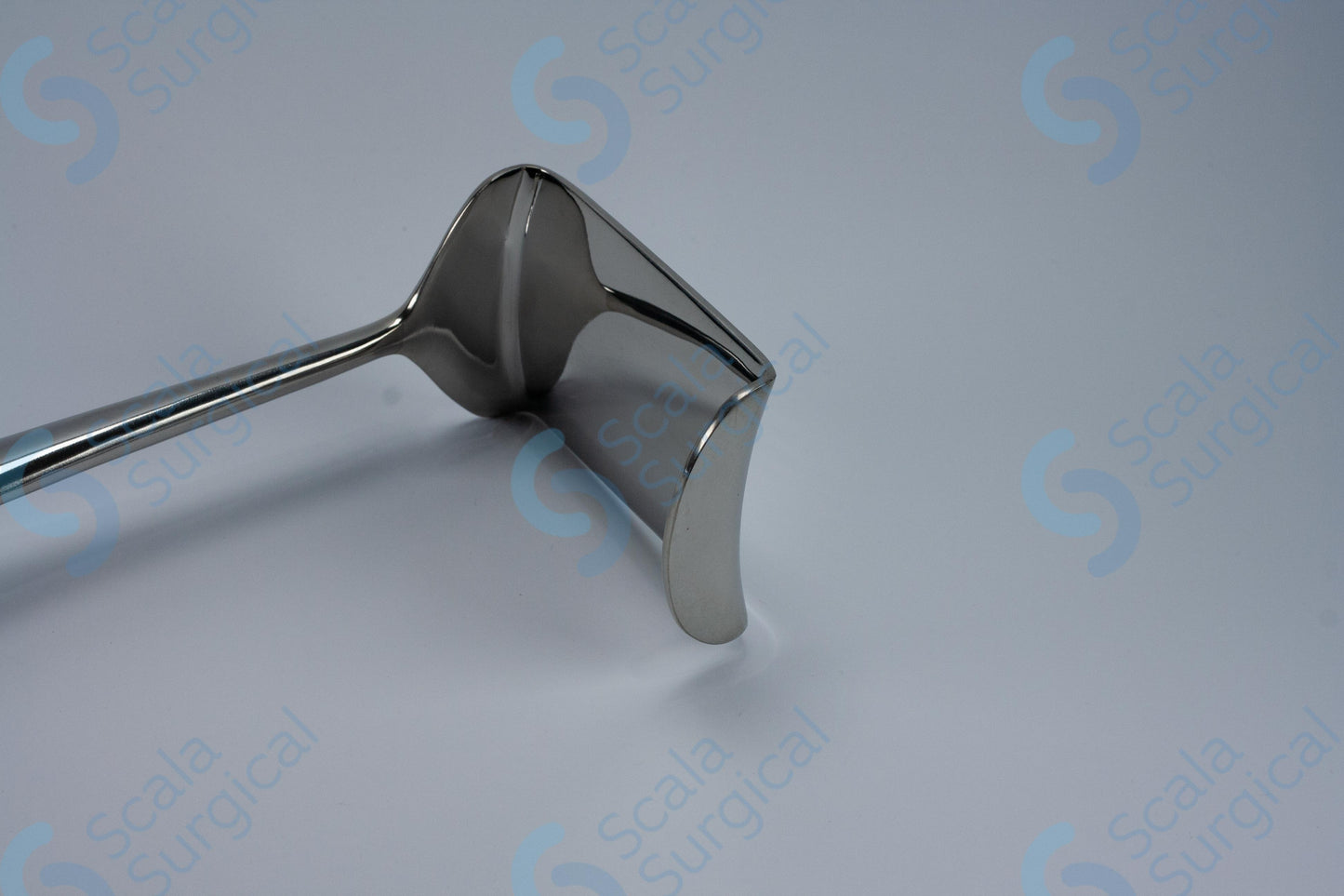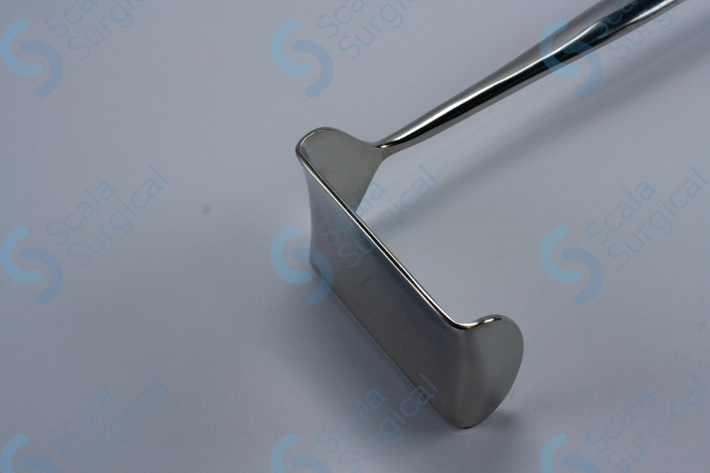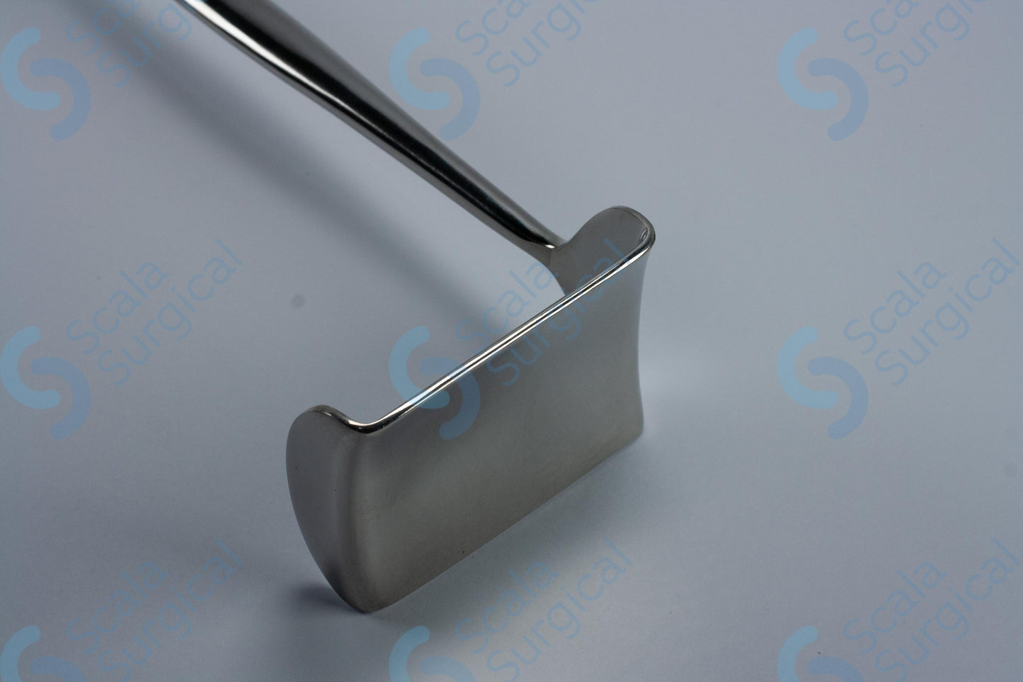 The Morris Retractor is a surgical instrument used to separate and hold back tissue during a surgical procedure. It has two ends with different blade widths and depths, allowing the surgeon to access different areas of the body.