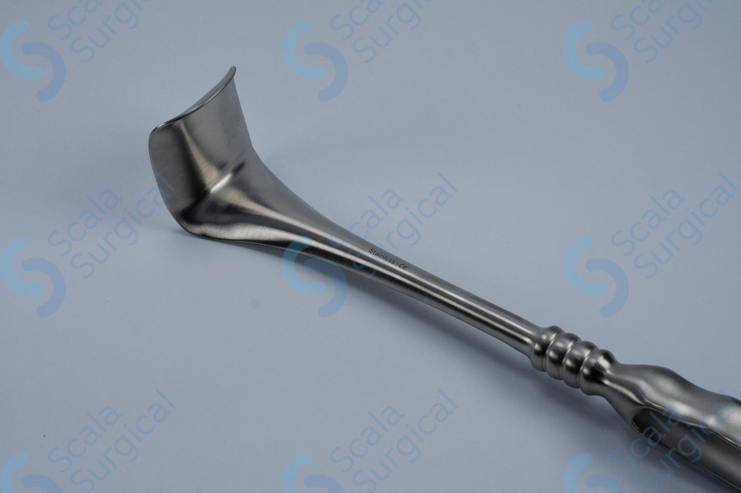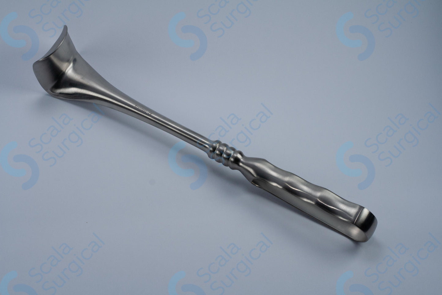 The Richardson Retractor is a surgical instrument used to hold back underlying tissues or organs and provide a clear view of the surgical site. The single ended version of this retractor has a 38mm wide by 44mm deep blade and is 241.3mm (9? inch) long.