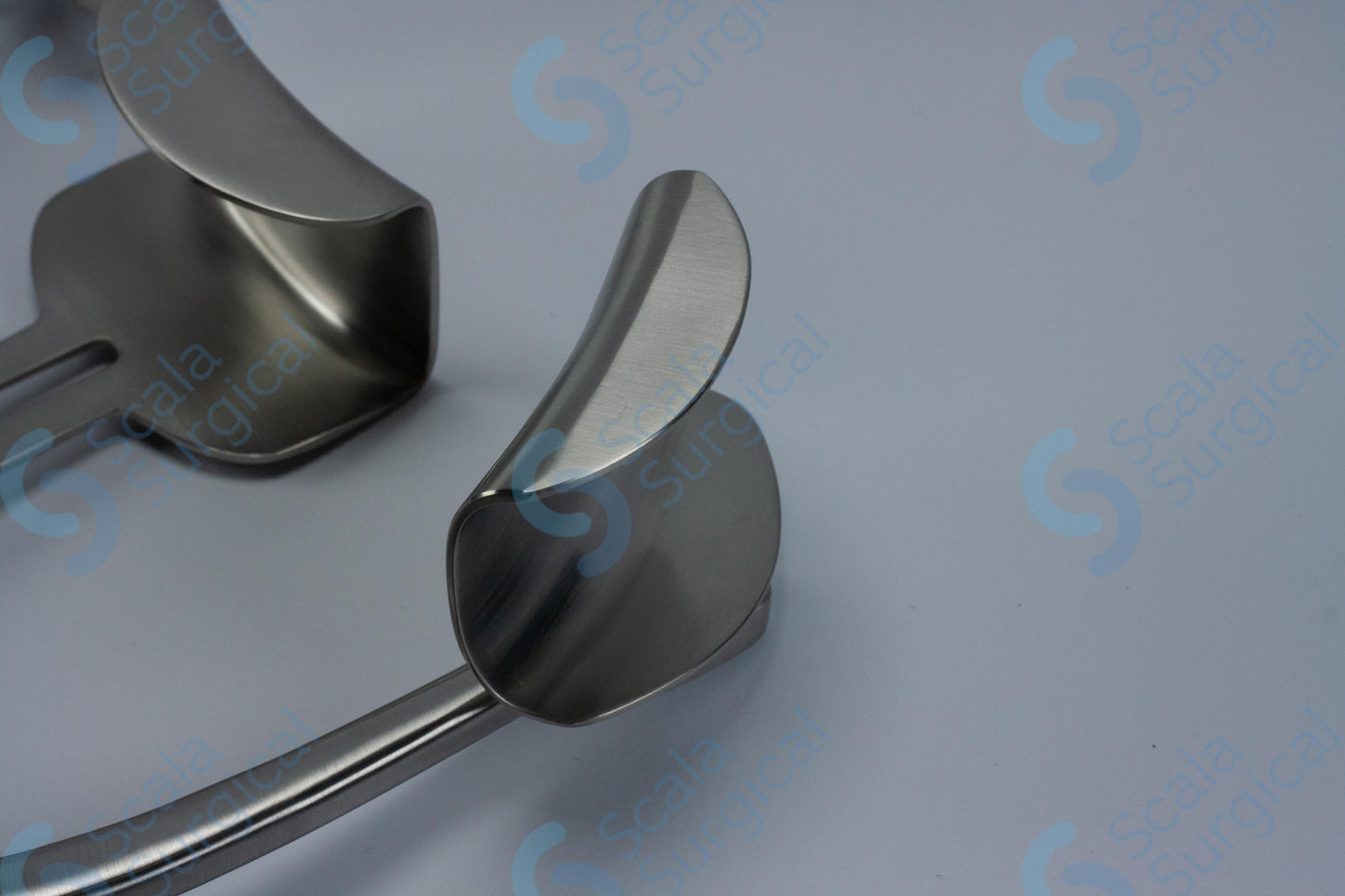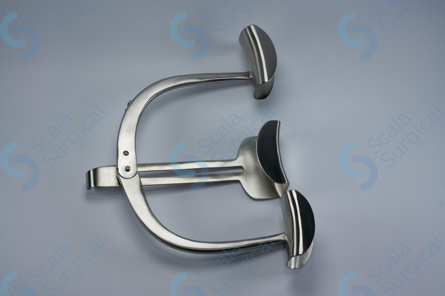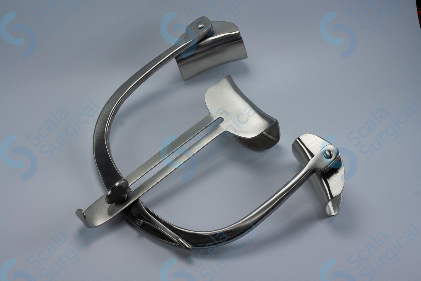 The Robin Masse Abdominal Retractor with Centre Blade is a surgical tool used to hold open the abdominal wall during surgical procedures. It is used to provide a clear view of the abdominal cavity for surgeons to perform operations. The retractor is composed of two blades which are connected by a central blade, allowing for the adjustable opening of the abdominal wall.