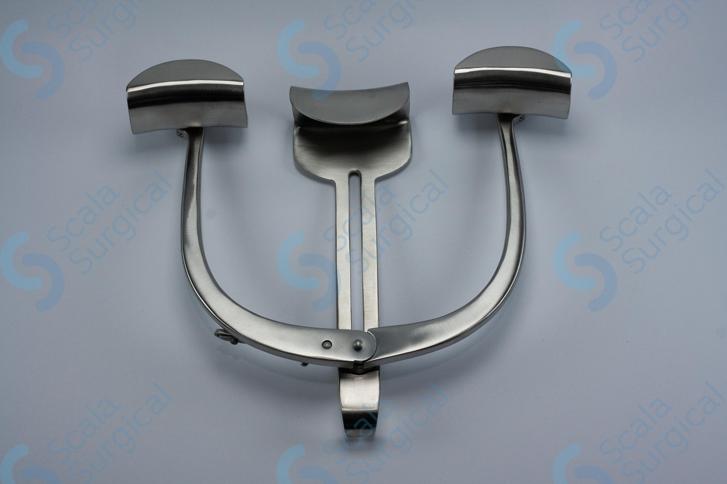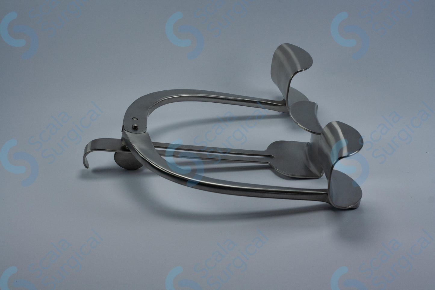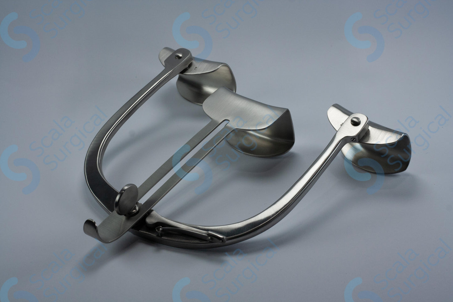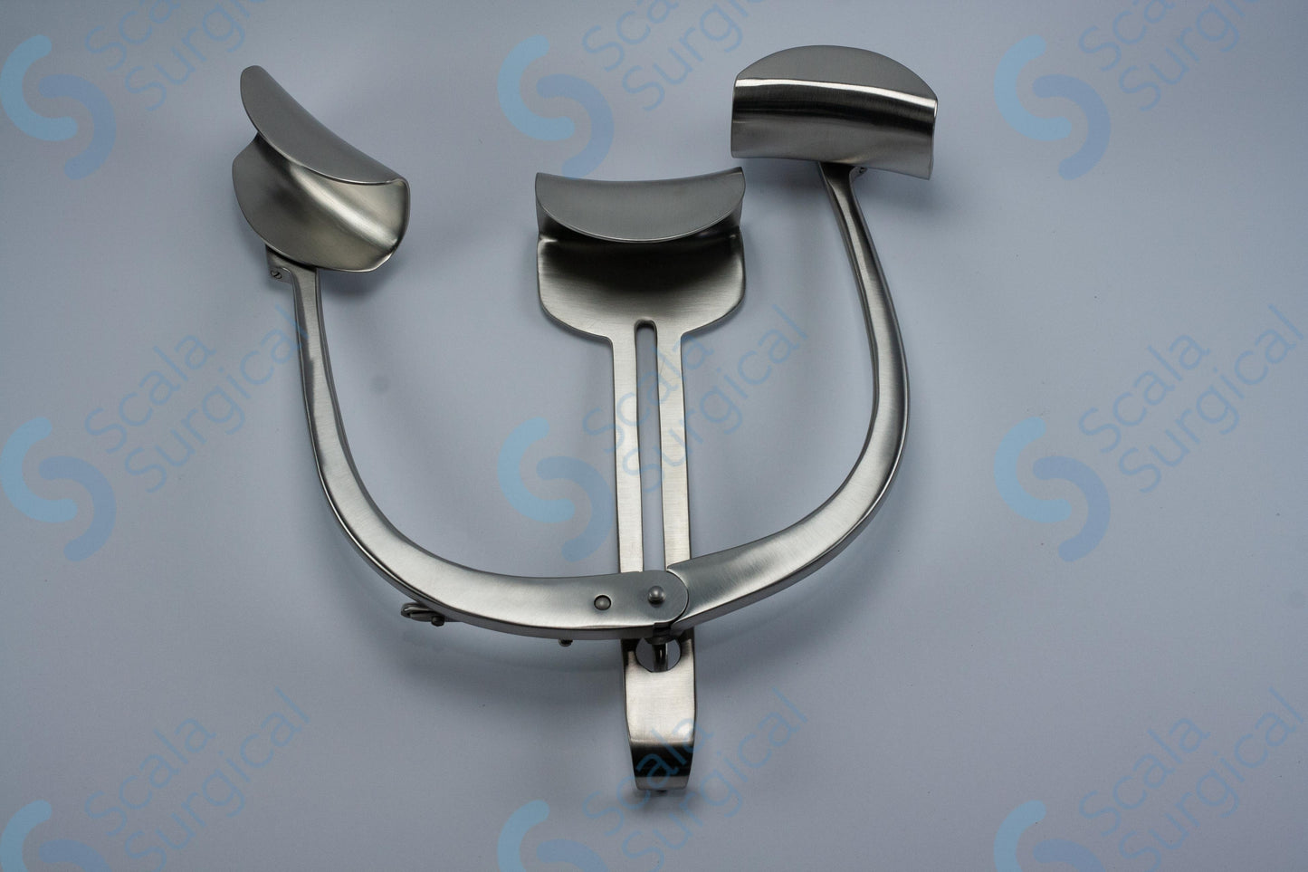 The Robin Masse Abdominal Retractor with Centre Blade is a surgical tool used to hold open the abdominal wall during surgical procedures. It is used to provide a clear view of the abdominal cavity for surgeons to perform operations. The retractor is composed of two blades which are connected by a central blade, allowing for the adjustable opening of the abdominal wall.