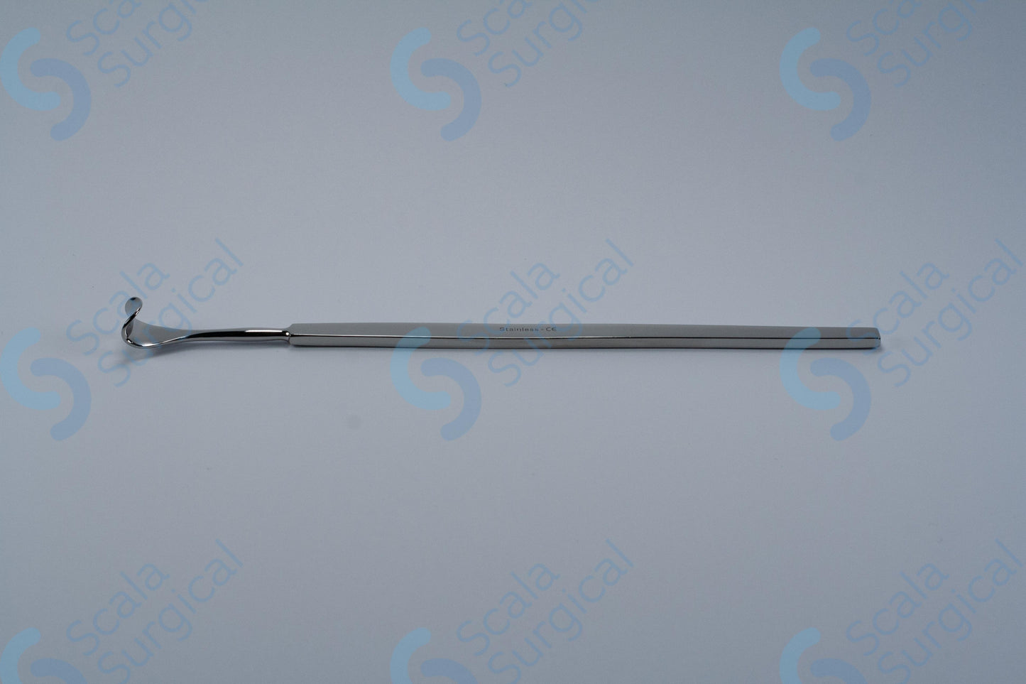 A Cushing Vein Retractor is a surgical instrument used to spread tissue apart to expose a vein during a surgical procedure. It is typically used during vascular surgeries to expose the surgical site. The retractor is composed of two curved blades with a handle and is used to spread the tissue apart so that the surgeon can gain access to the vein.