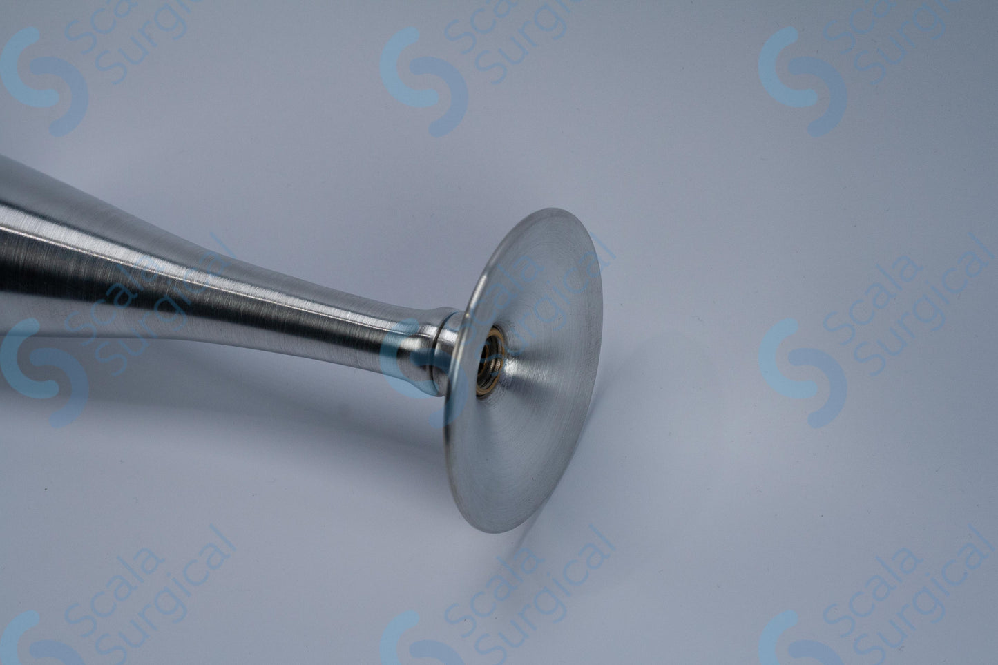 A Pinnard Aluminium Foetal Stethoscope is a specialized instrument used by medical professionals to listen to the fetal heartbeat during prenatal care. It is designed to amplify sound in the range of fetal heartbeats, making it easier to detect and monitor the baby's heart rate.