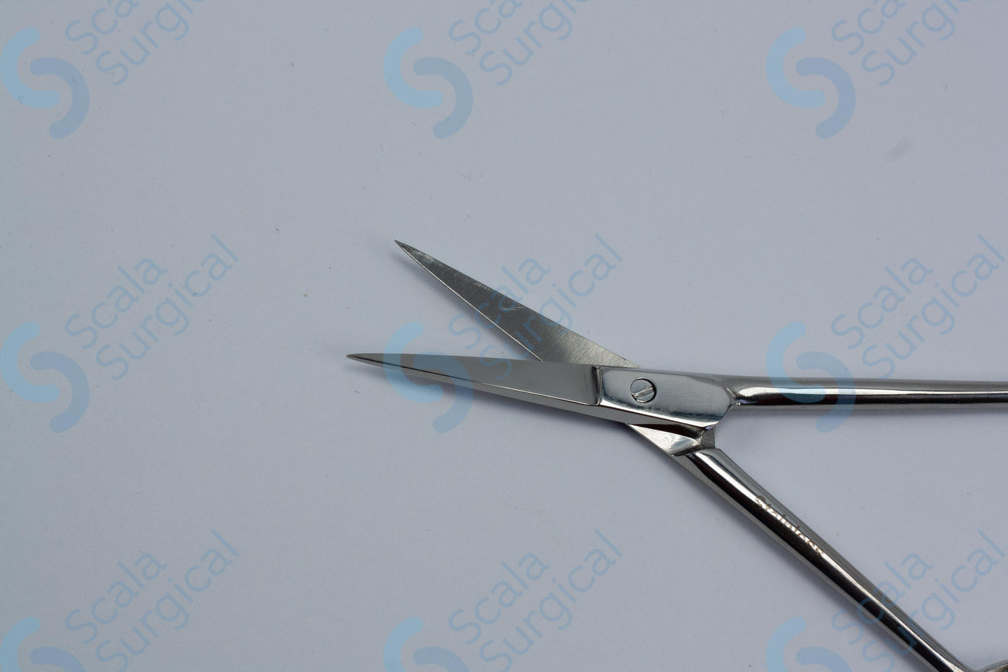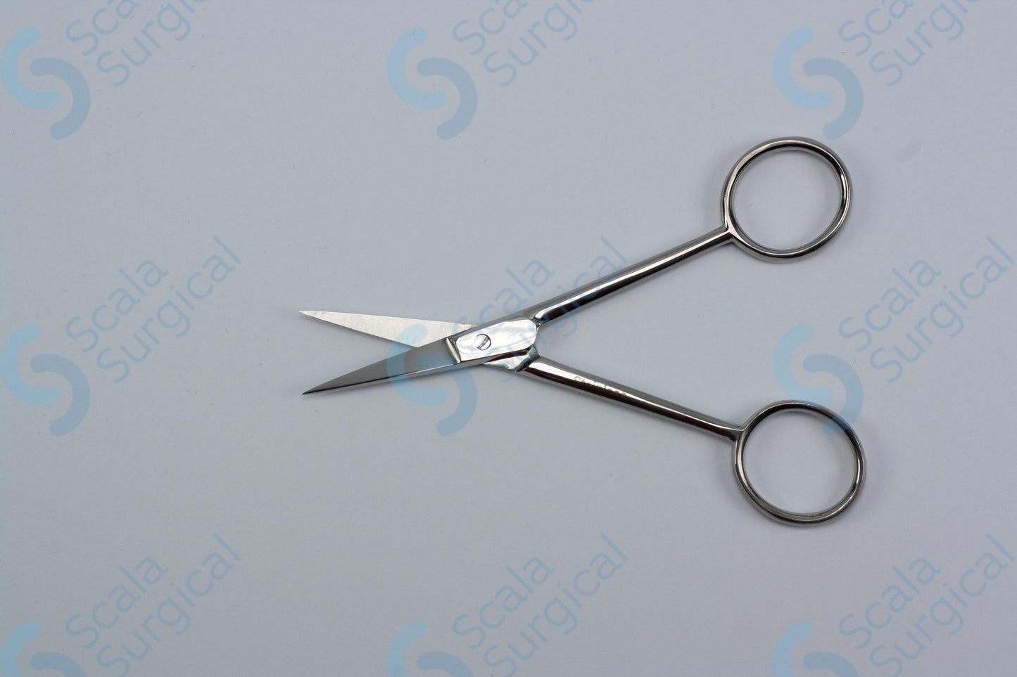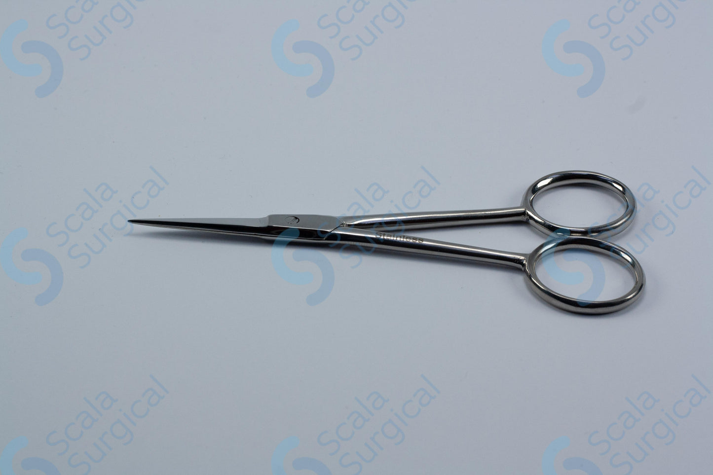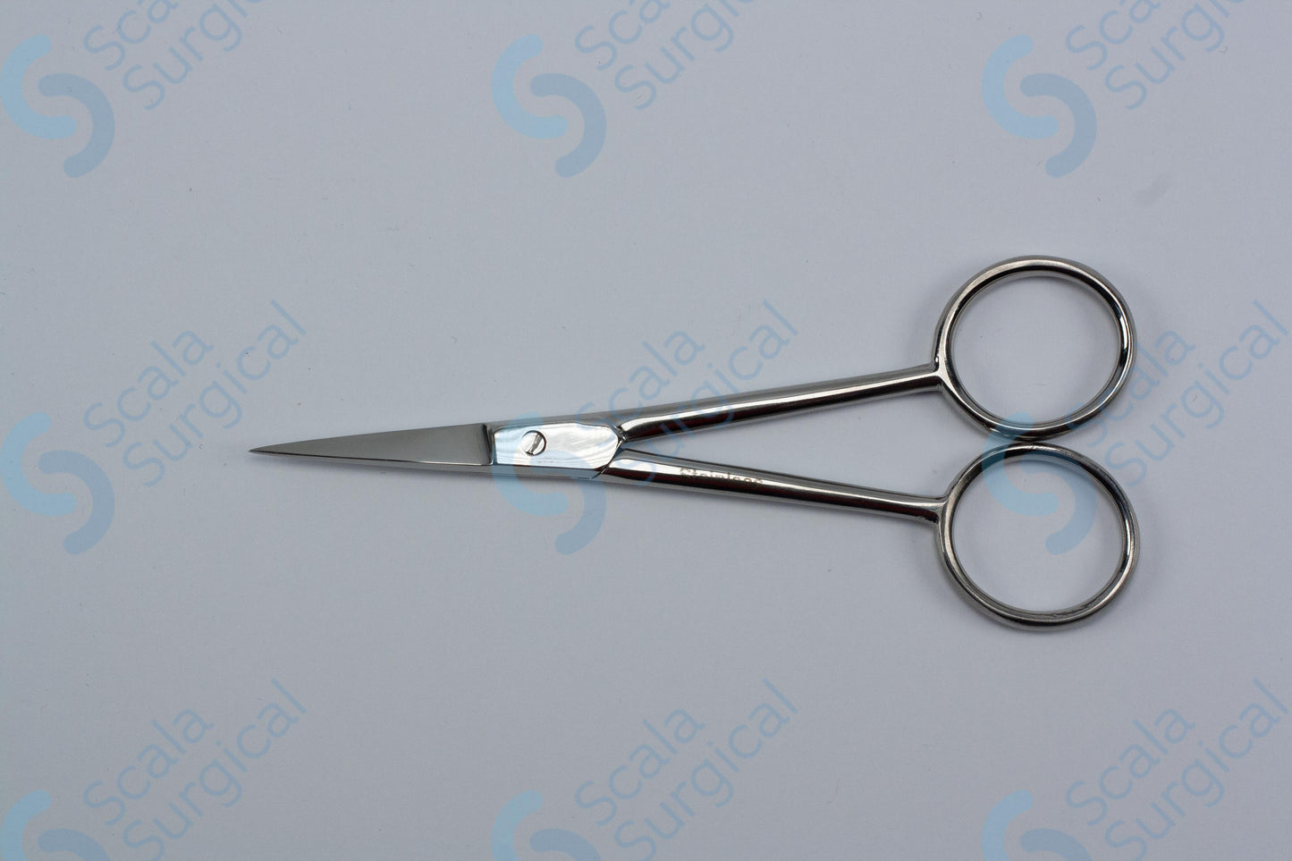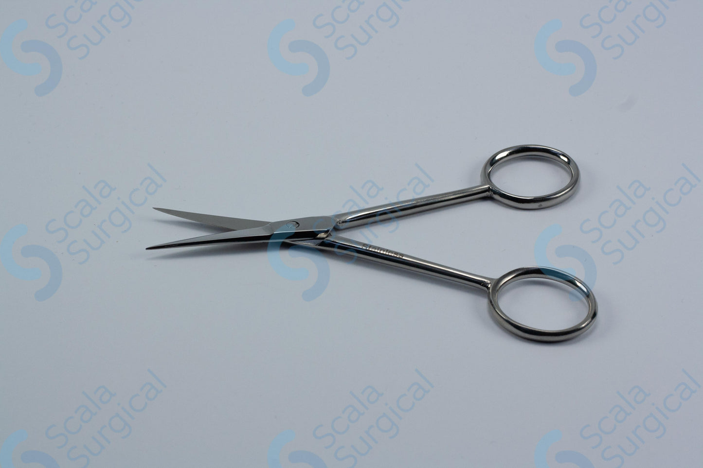 Dissecting scissors are used by surgeons during surgery to cut through tissue and other materials. They are designed to provide a precise and controlled cut. These scissors have straight blades with open shanks, which allows for better visibility and access to the area being cut. The length of the scissors is 114.3mm (4? inch).