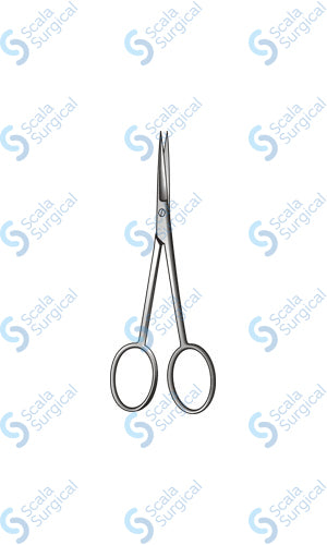 Dissecting scissors are used in surgical procedures to cut through tissue, such as muscle and fascia. They have long, straight blades that are sharpened on one side and have blunt tips on the other. They are used to make precise incisions and to separate tissue layers.