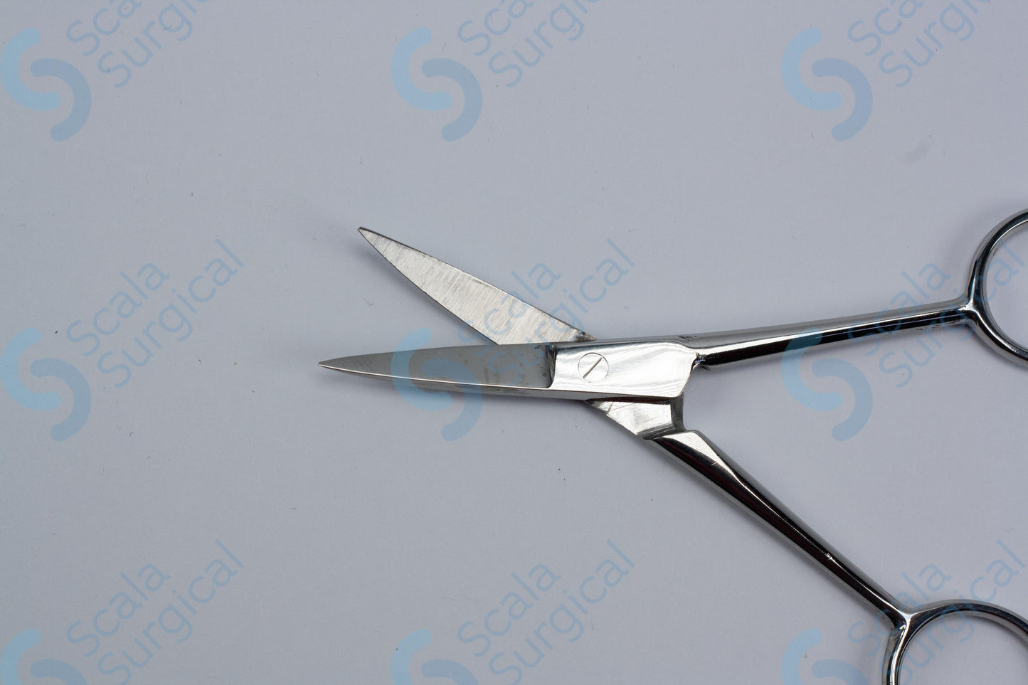 Dissecting scissors are used in surgical procedures to cut through tissue and other materials. They are designed with curved blades and open shanks, allowing for precise cutting and manipulation of materials.