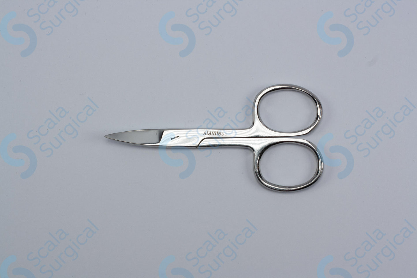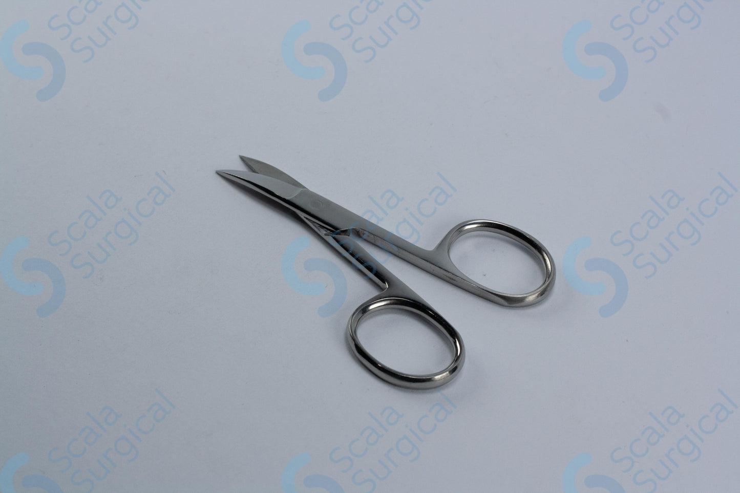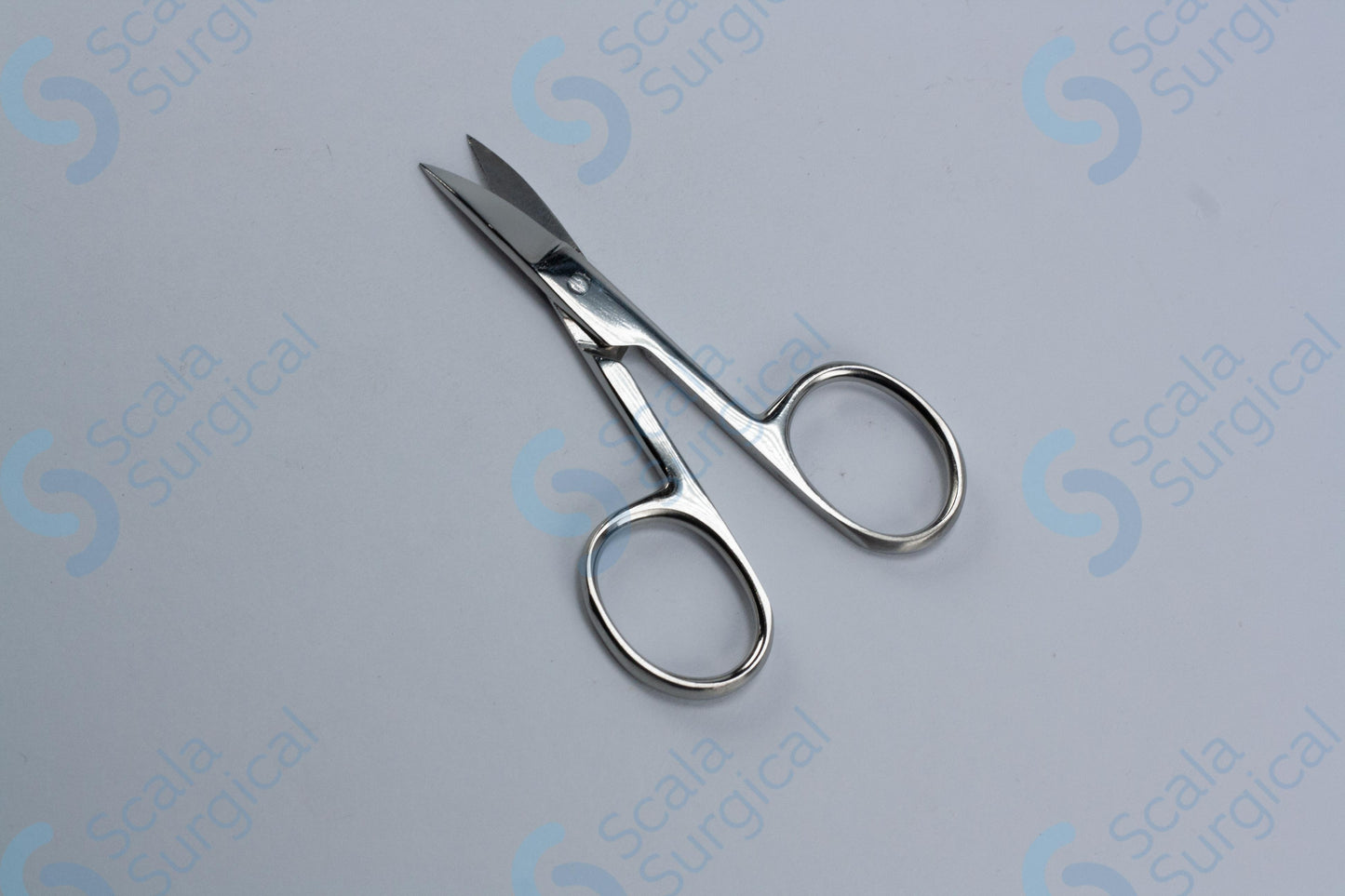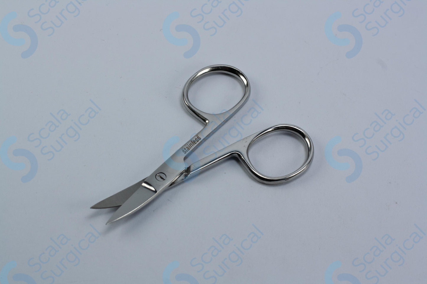 Nail scissors curved (88.9mm) (3? inch) are used in the surgical field for trimming and cutting nails. They are typically used to trim and shape fingernails and toenails before and after surgery. They are also used to trim away excess skin and cut away bandages.