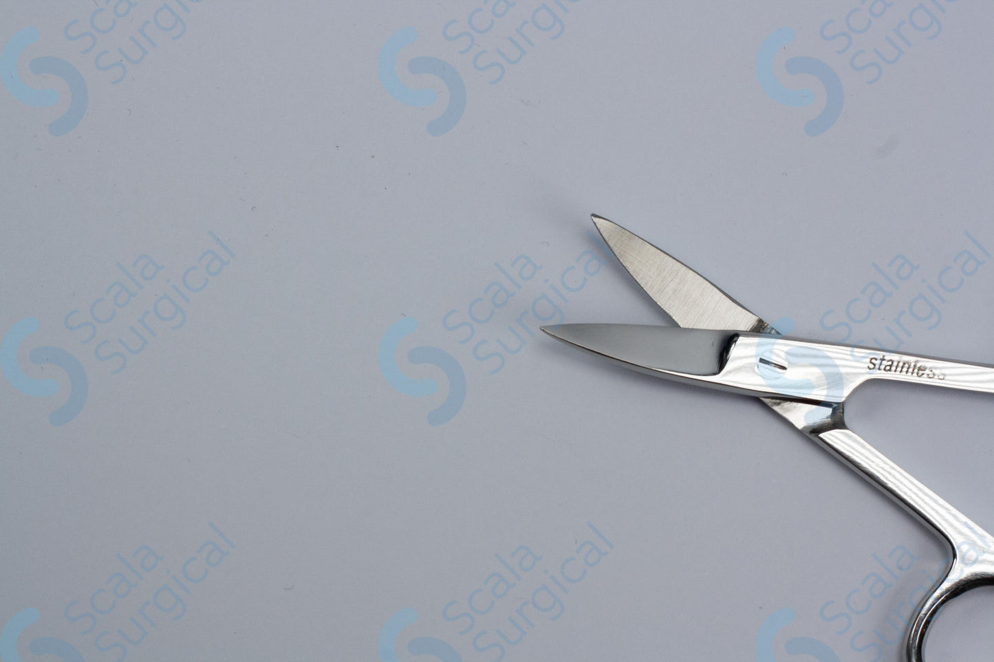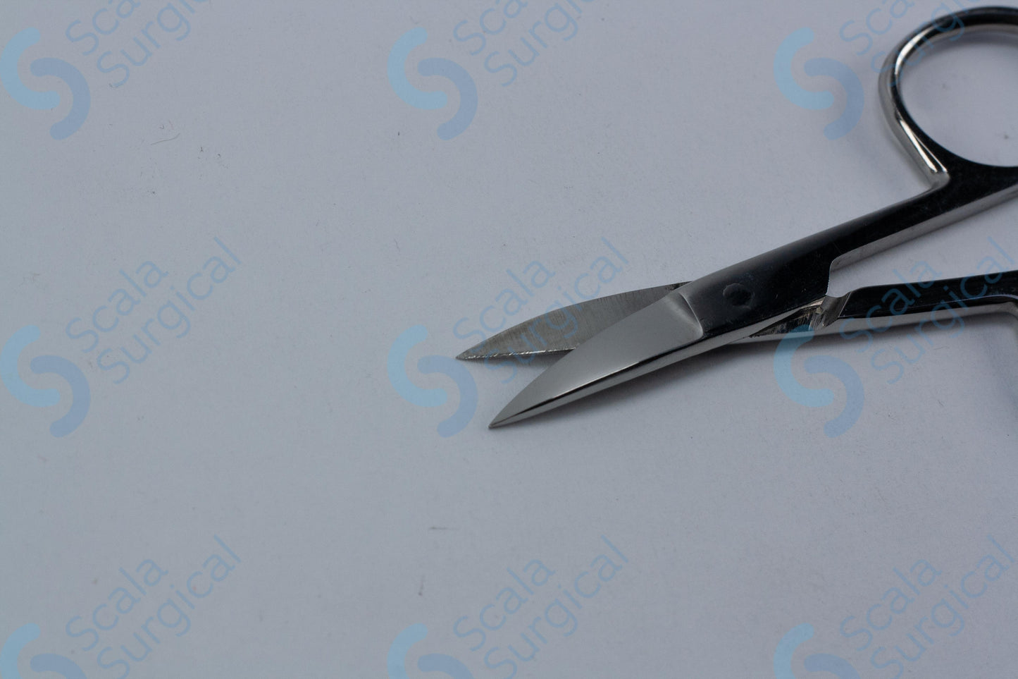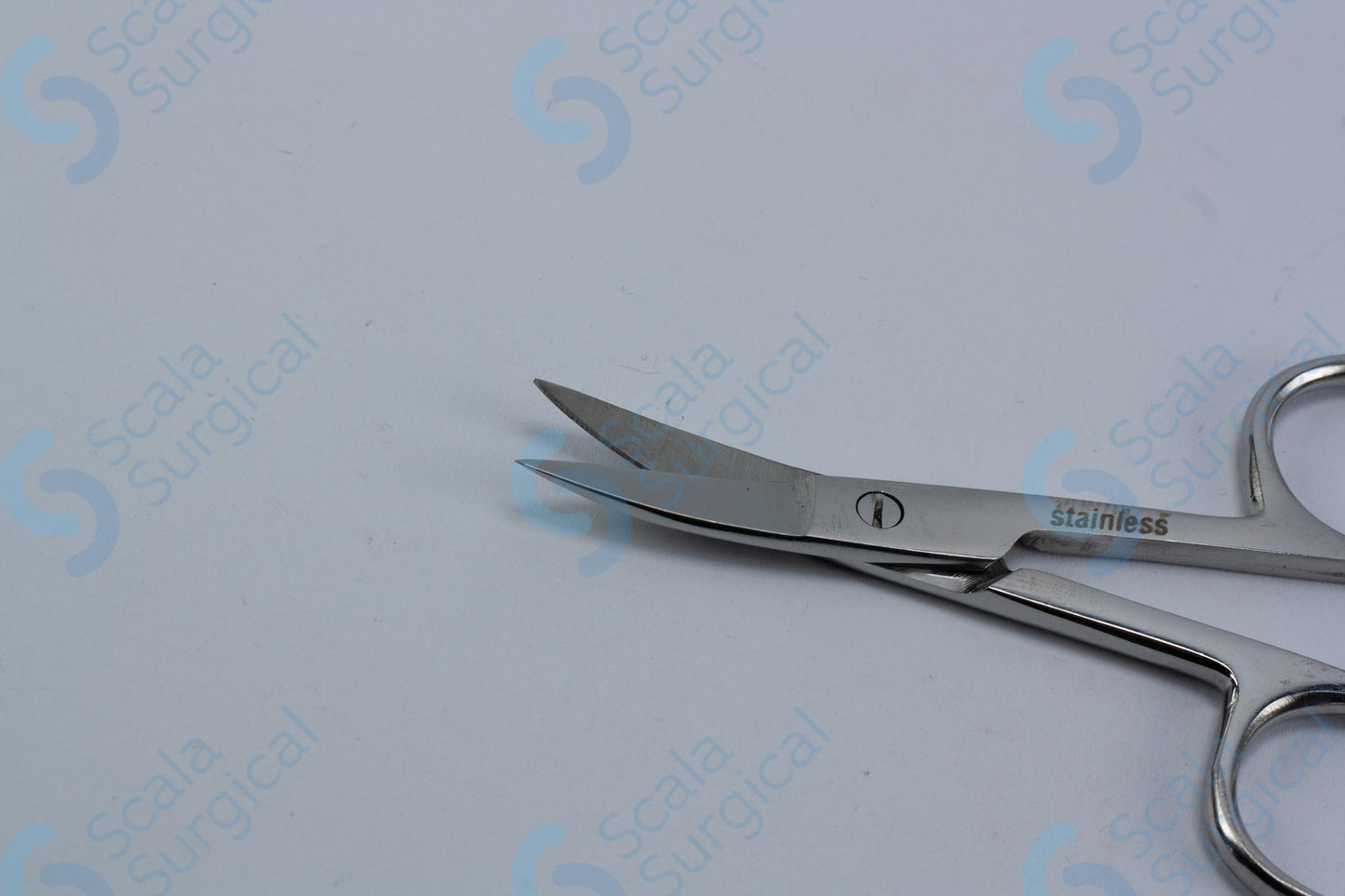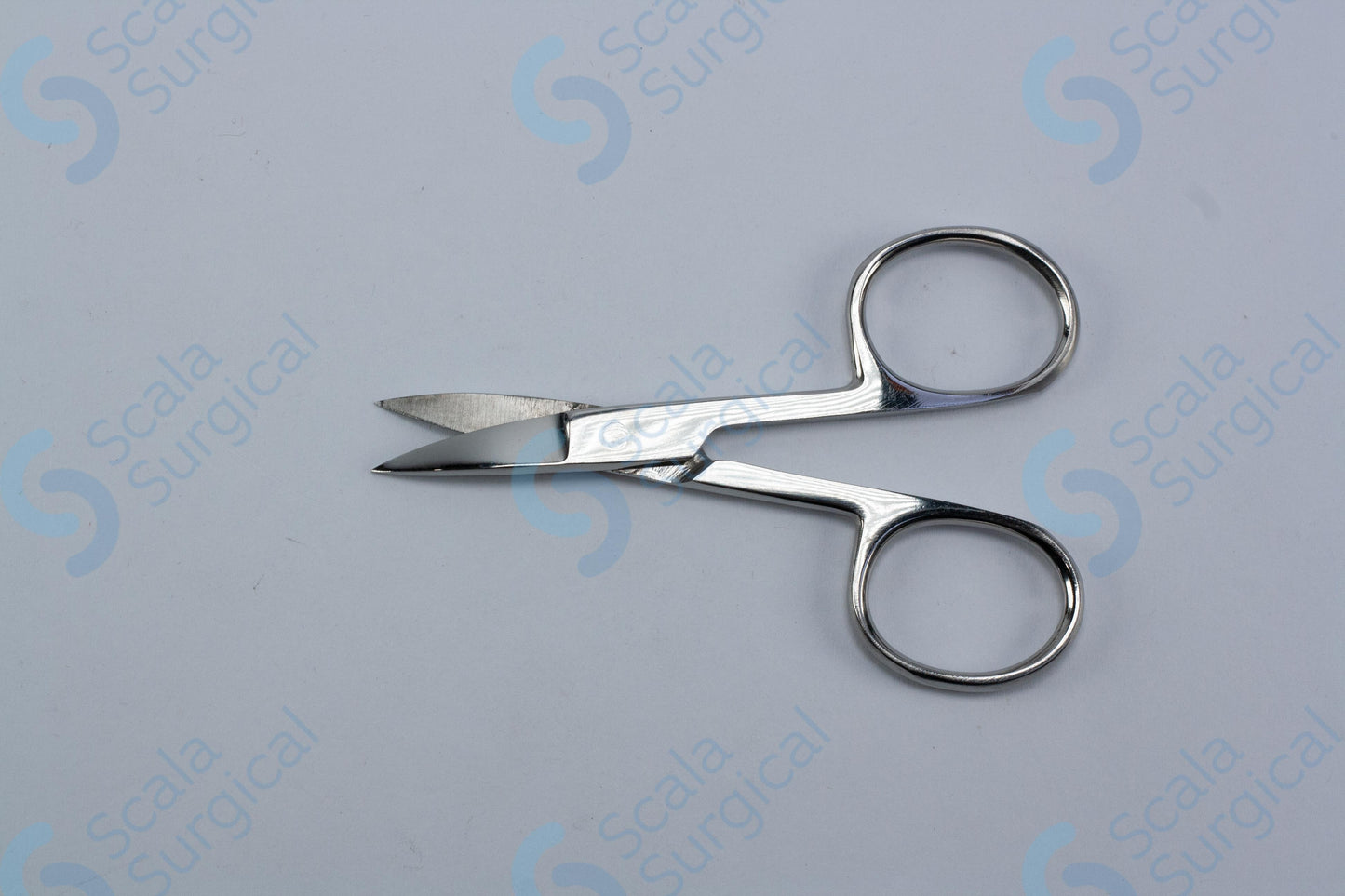 Nail scissors curved (88.9mm) (3? inch) are used in the surgical field for trimming and cutting nails. They are typically used to trim and shape fingernails and toenails before and after surgery. They are also used to trim away excess skin and cut away bandages.