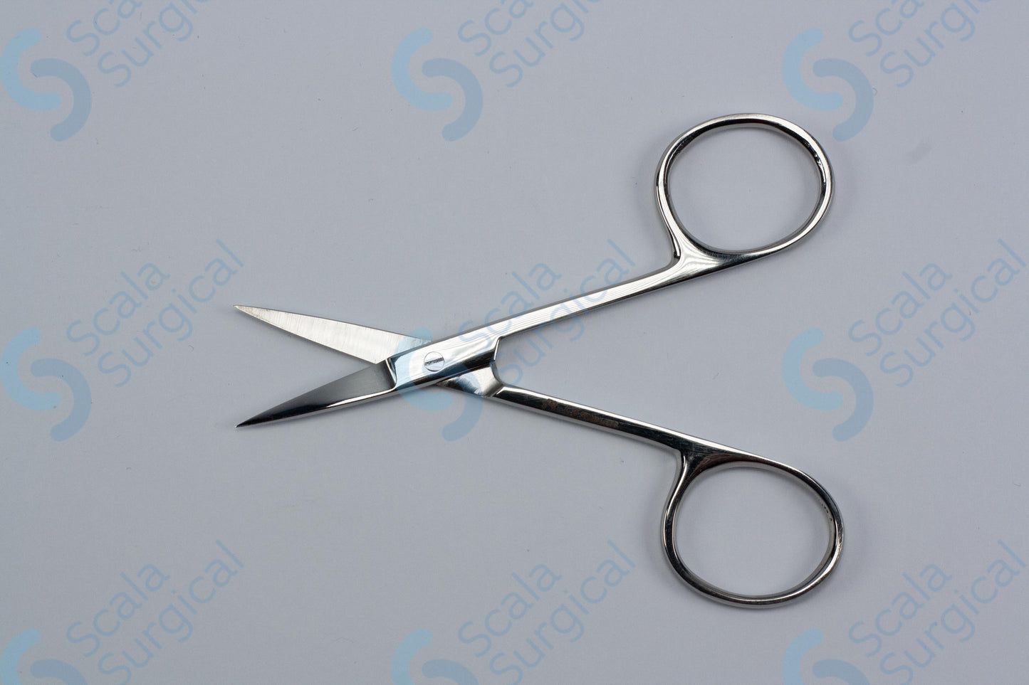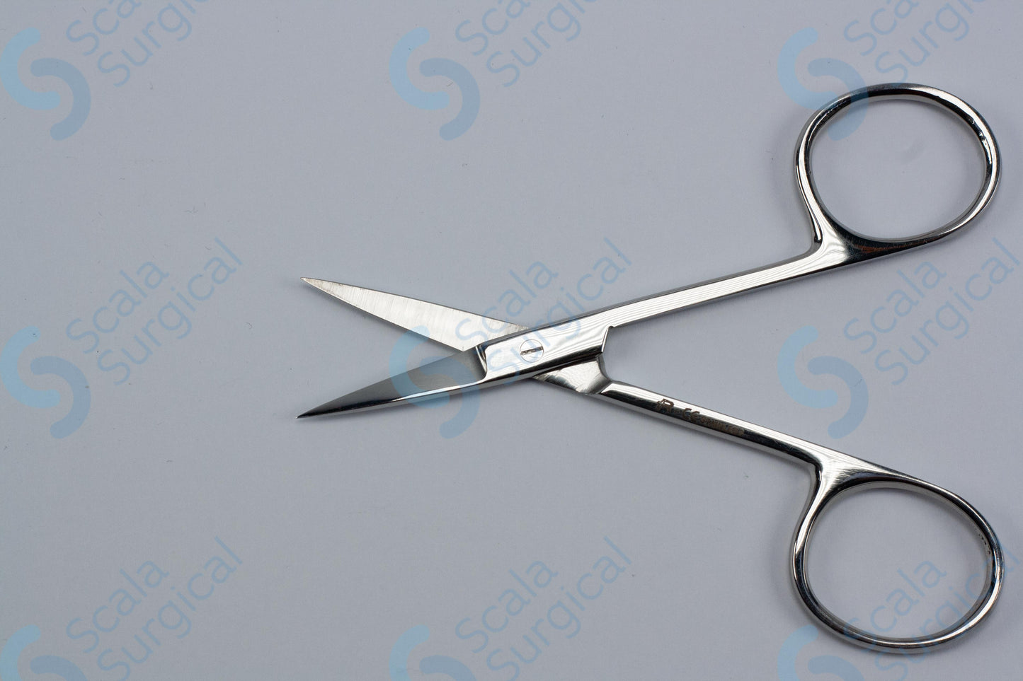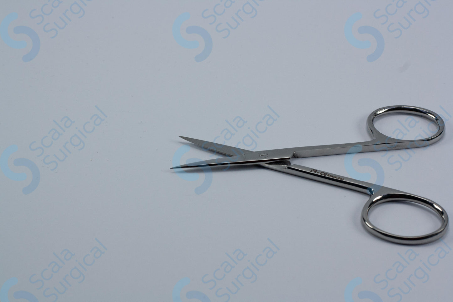 Iris scissors are a type of surgical scissors used to make precise cuts in delicate tissues. They are commonly used in ophthalmology to cut tissue in the eye, such as the iris, cornea, and sclera. The sharp/sharp straight design is specifically designed for cutting through tough and fibrous tissue, such as muscle and tendon. The 90mm length is ideal for reaching into deeper areas of the eye.