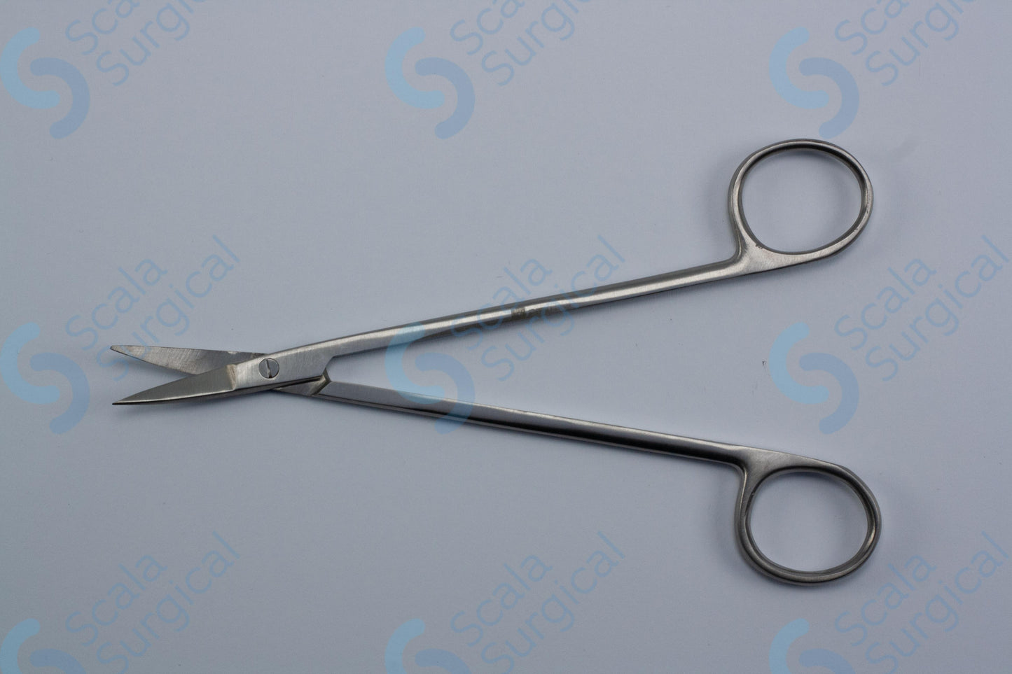 Kelly Fistula Scissors Curved (159mm) (6? inch) are used to cut and dissect tissue during surgical procedures. They are designed with a curved blade to help facilitate the cutting of tissue in hard-to-reach places. They are commonly used to perform surgeries such as fistula repair and other delicate procedures.