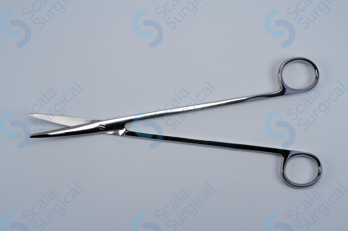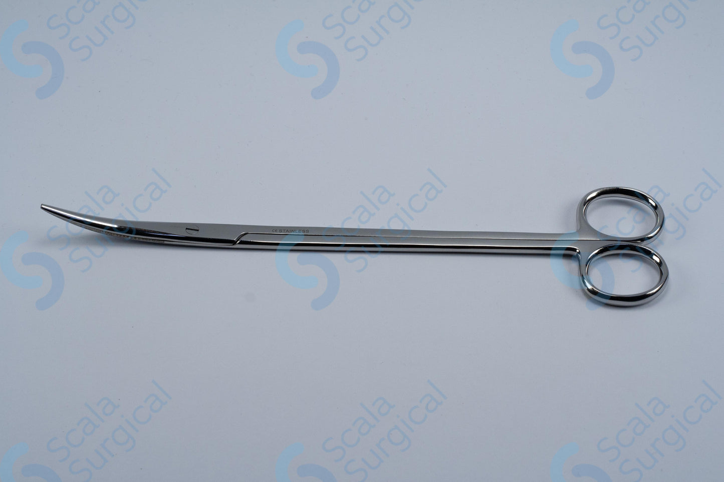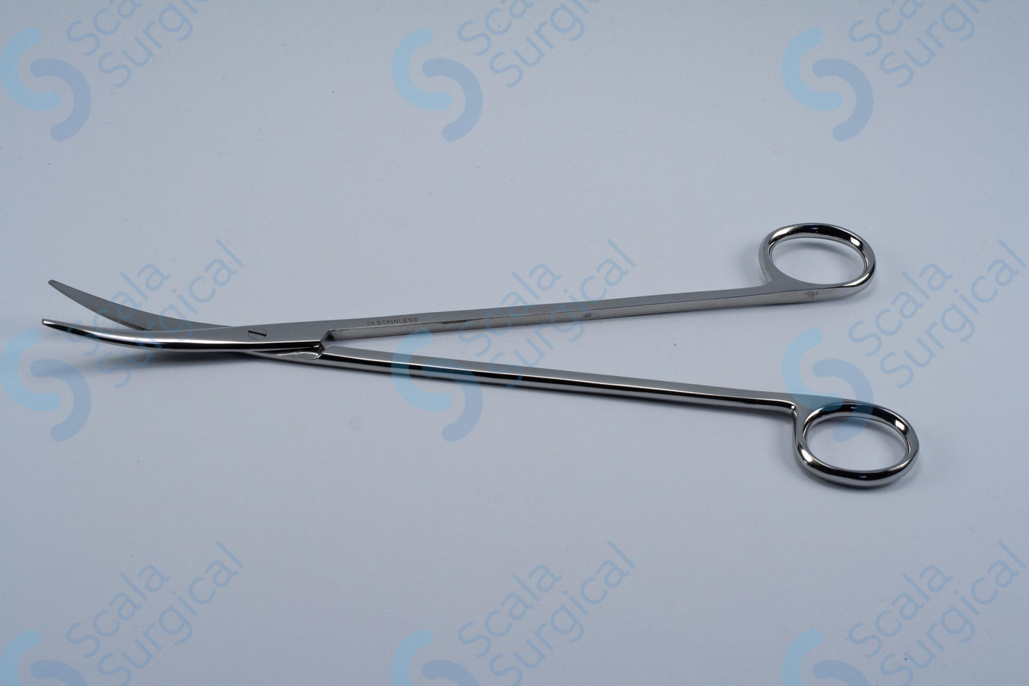 Nelson-Metzenbaum Thoracic Scissors Curved (228.6mm) (9 inch) are used in the surgical field to make precise cuts in tissue in the thoracic area. These scissors are designed to be long enough to reach deep into the chest cavity and have a curved blade that allows for better maneuverability in tight spaces. They are used in a variety of thoracic procedures, including cardiothoracic surgery, thoracic oncology, and thoracic trauma.