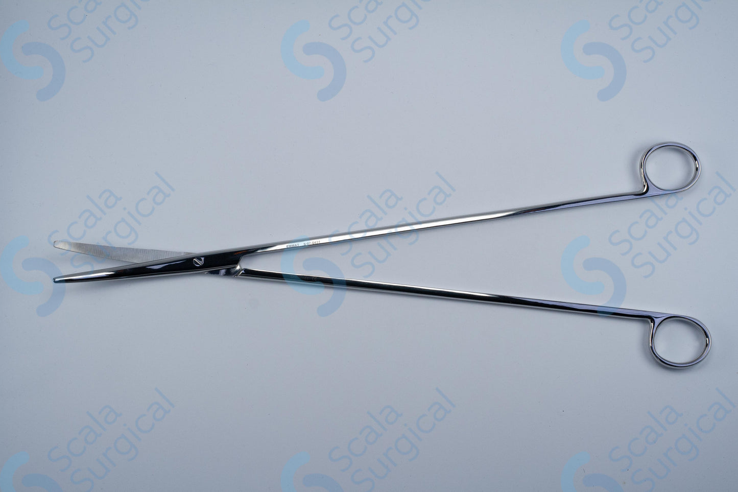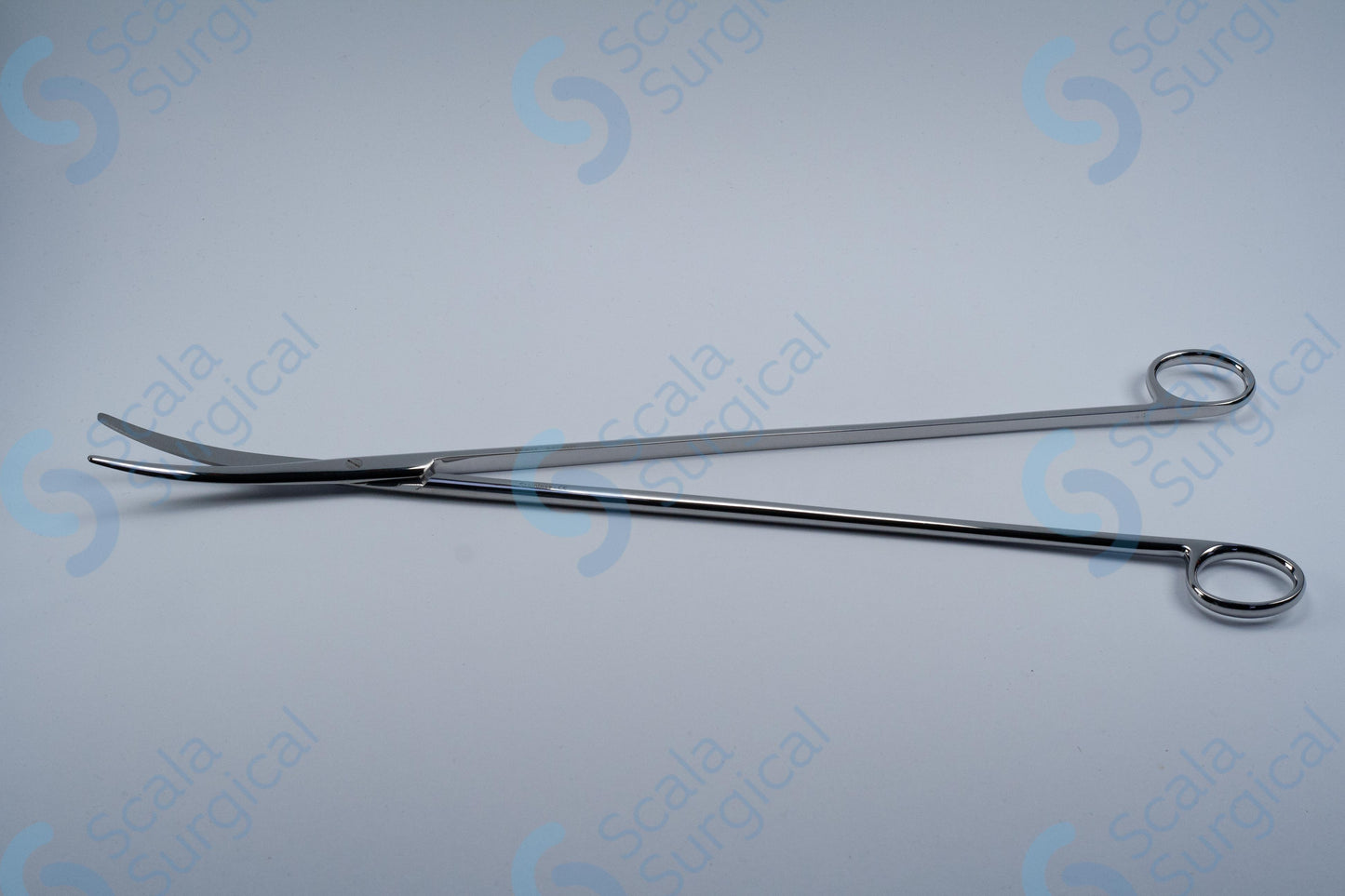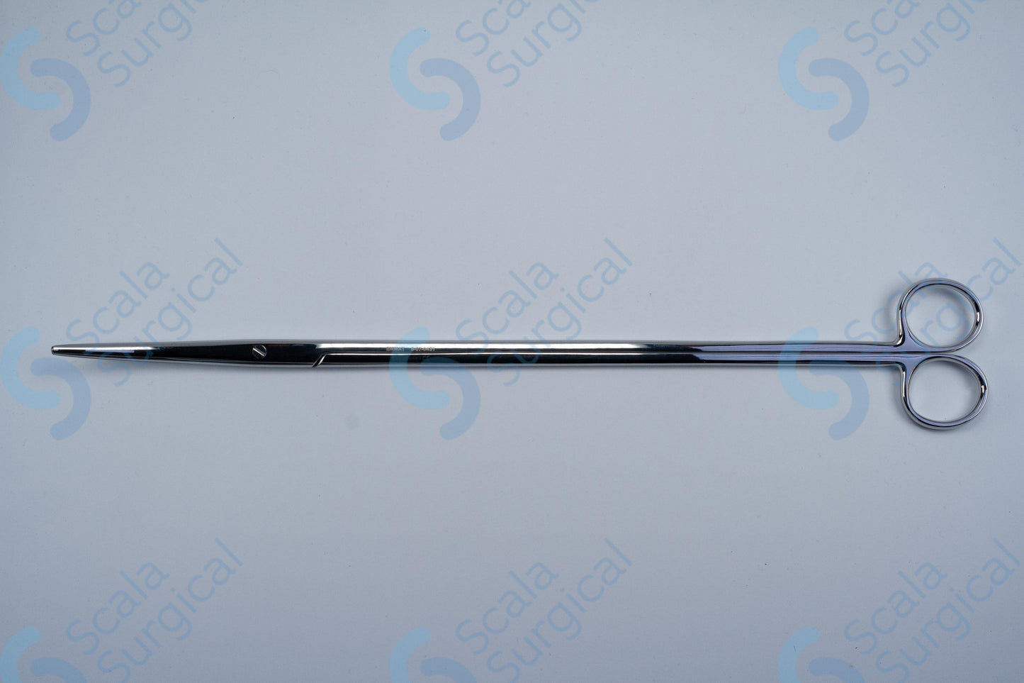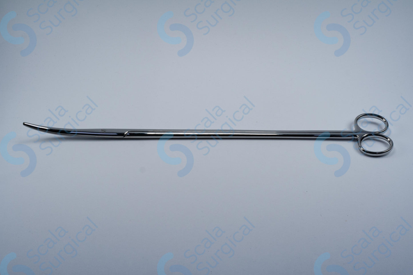 Nelson Scissors Curved (380mm) are a type of surgical scissors used to cut tissue during surgical procedures. They typically have blunt tips and curved blades for precise cutting. They are most commonly used for cutting sutures, ligatures, and other soft tissues.