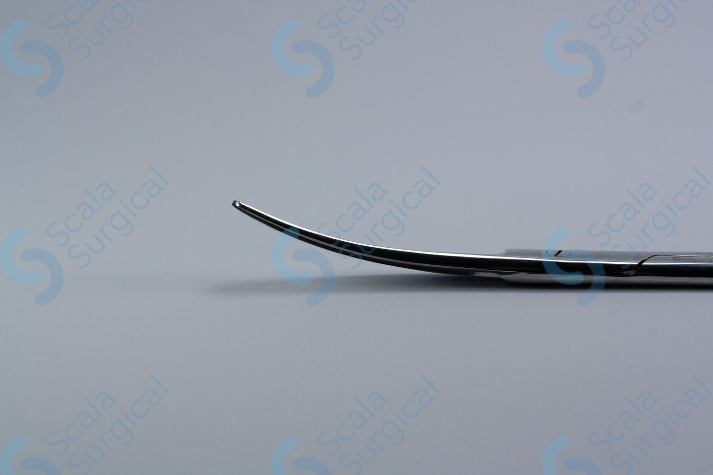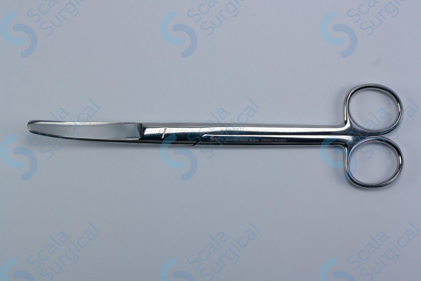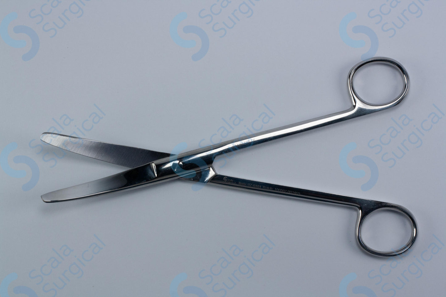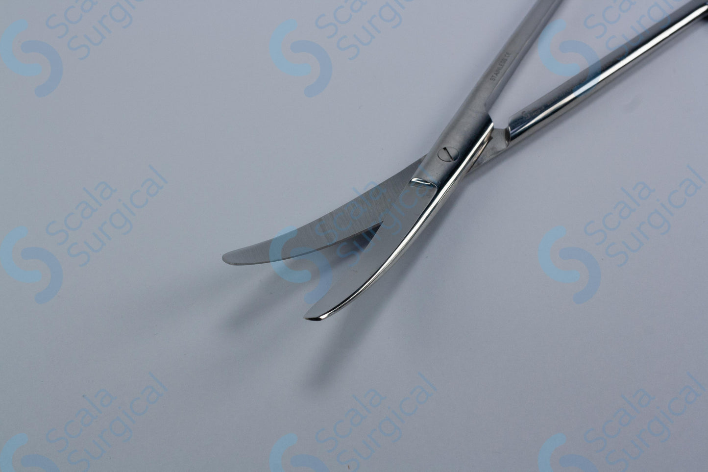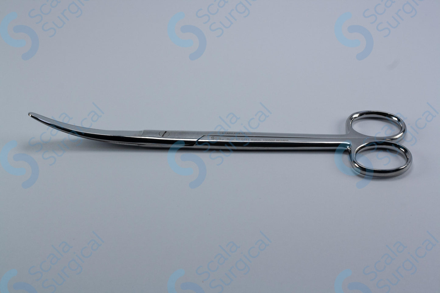 Doyen Uterine Scissors Curved (203.2mm) (8 inch) are a type of medical instrument used in gynecological and obstetric surgeries. They are used to cut and dissect tissue in the uterus, cervix, and other reproductive organs. The curved design of the blades allows for better access to deep tissue and the long length of the scissors provides a greater reach.