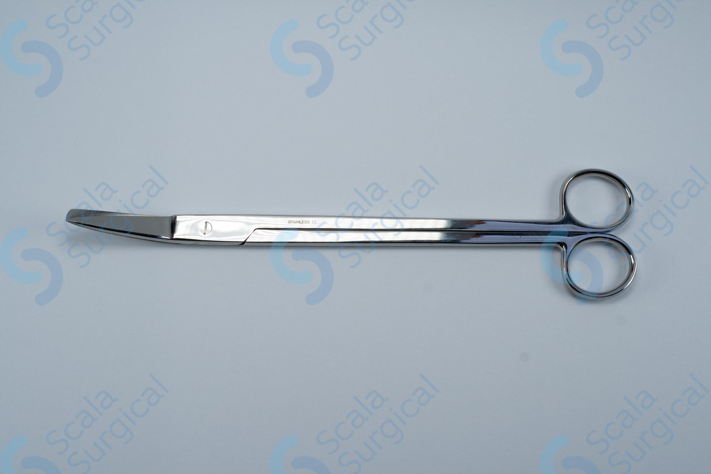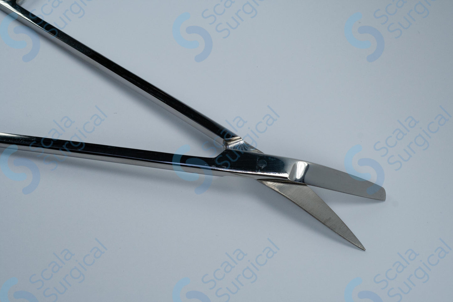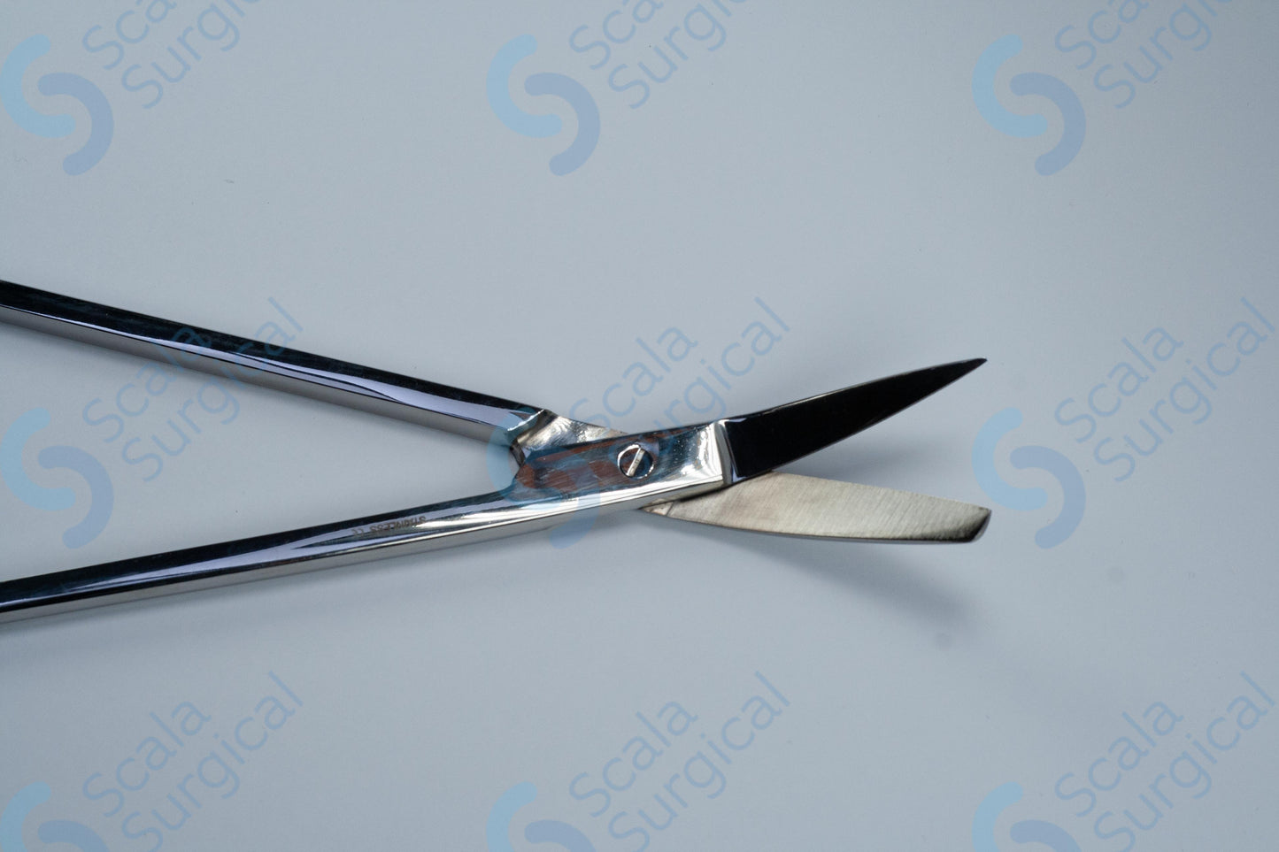 The Resano Capsular Scissors Angled on Flat (241.3mm) (10 inch) is a surgical instrument used for cutting and dissecting tissues during surgery. It is commonly used in cataract surgery to cut the anterior capsule of the lens and in other procedures to cut and dissect tissue.