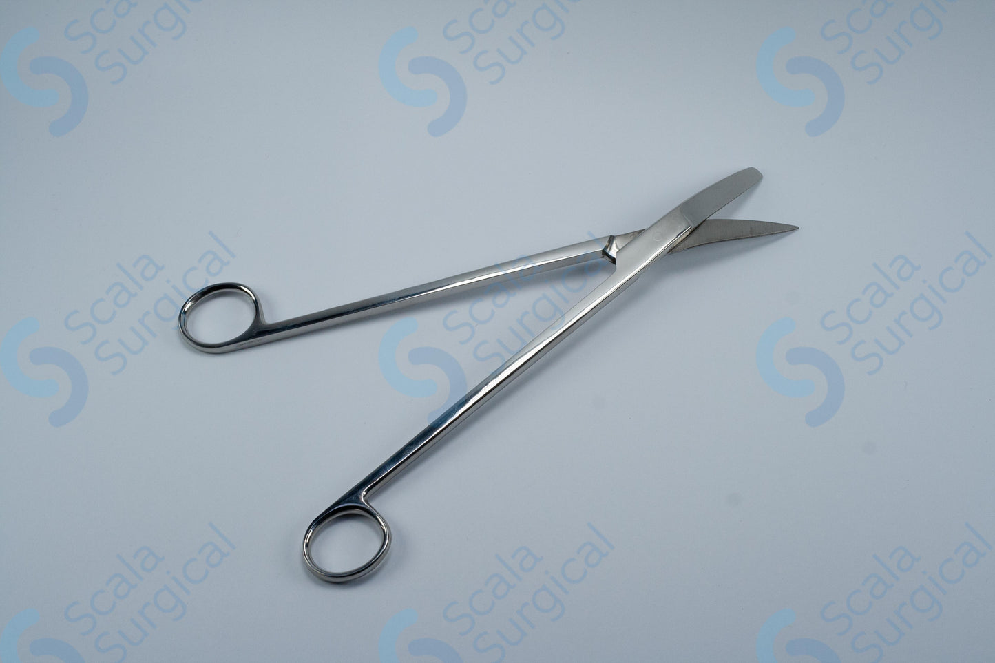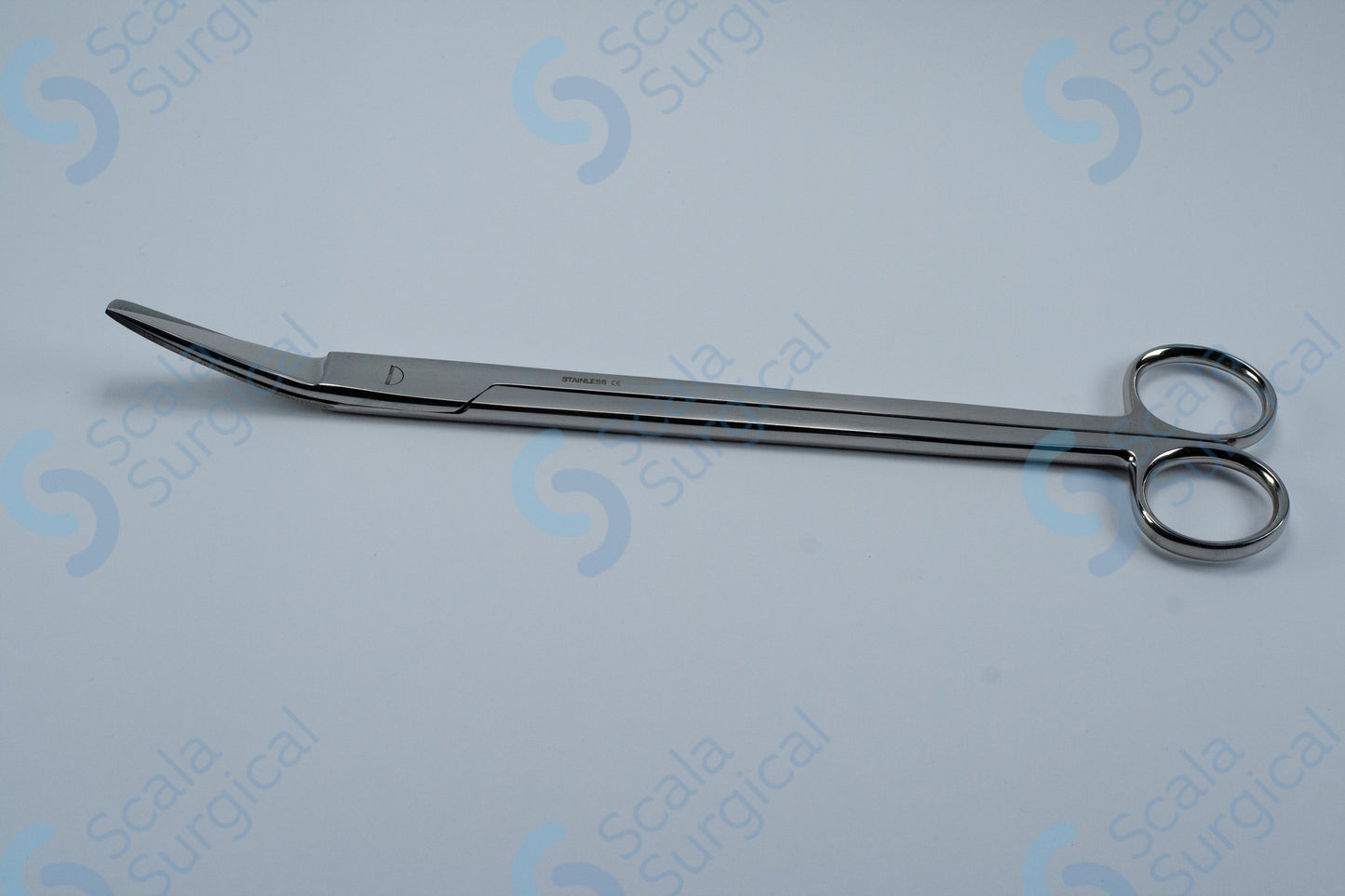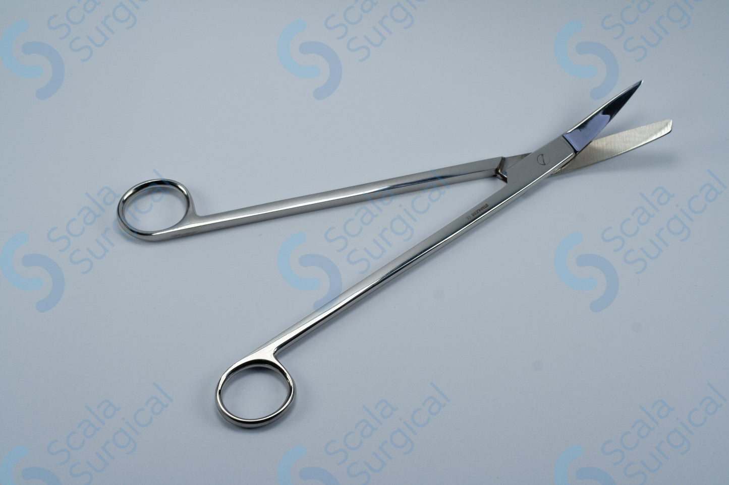 The Resano Capsular Scissors Angled on Flat (241.3mm) (10 inch) is a surgical instrument used for cutting and dissecting tissues during surgery. It is commonly used in cataract surgery to cut the anterior capsule of the lens and in other procedures to cut and dissect tissue.