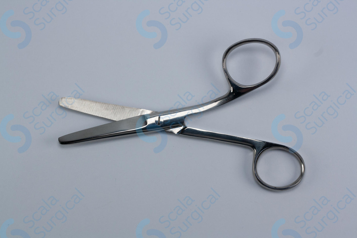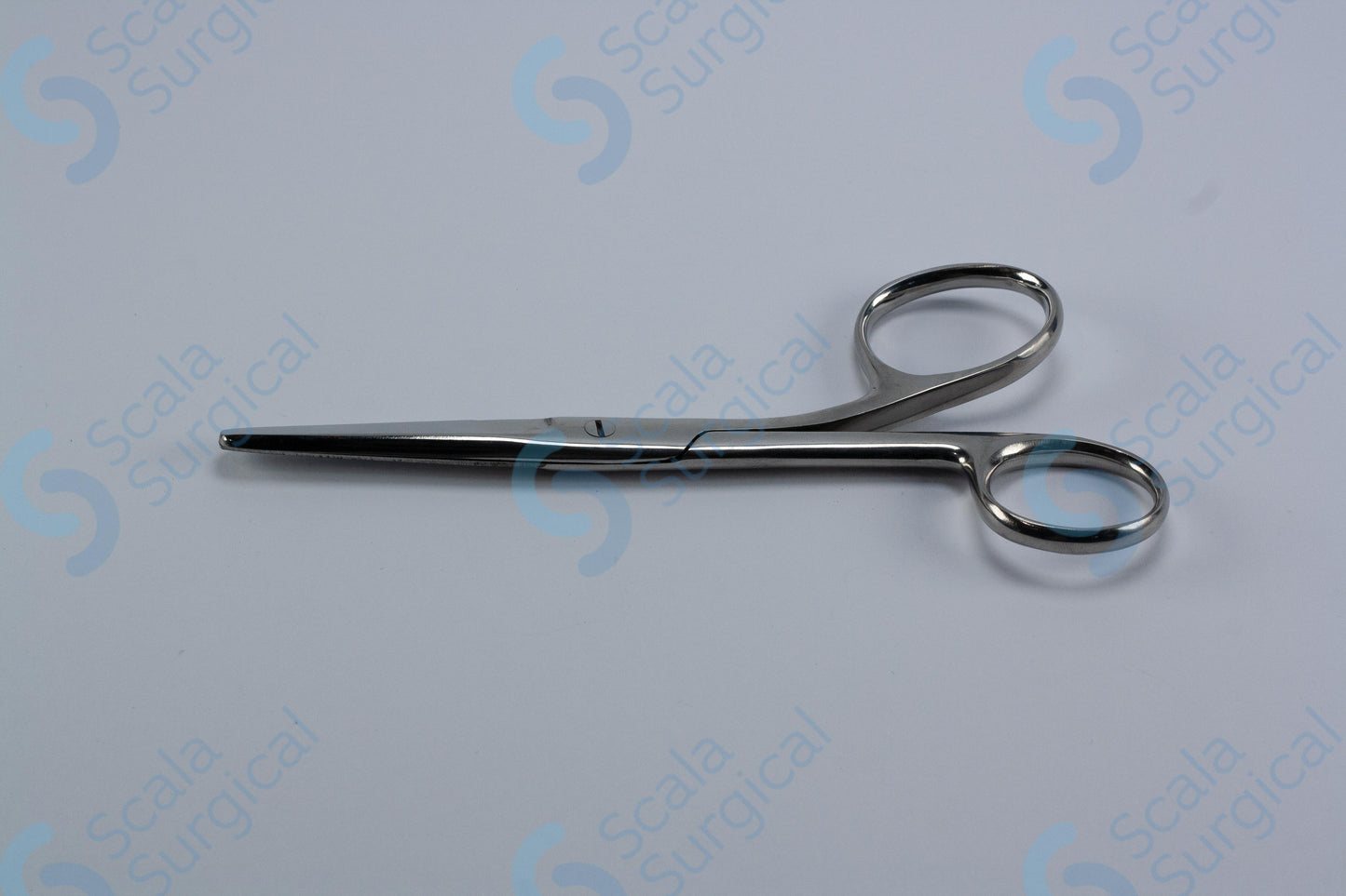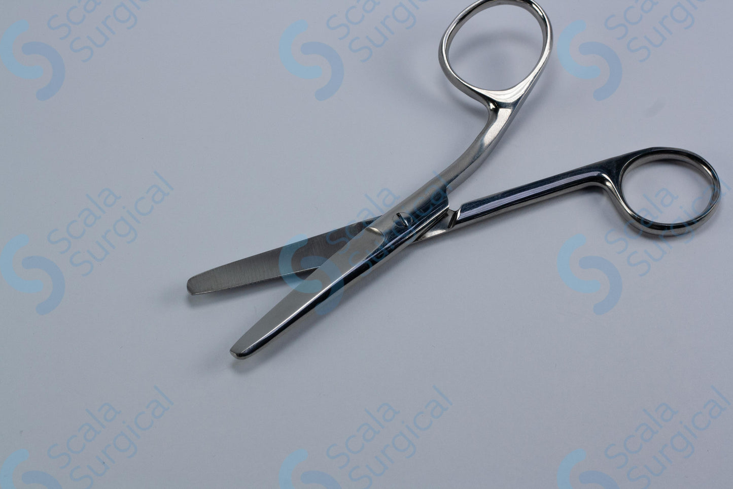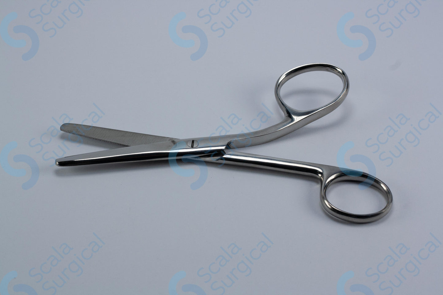 Kocher Scissors (5? inch) are used for cutting and dissecting tissue during surgical procedures. They are curved scissors with one blade that is slightly longer than the other, allowing for precise cutting and maneuvering.