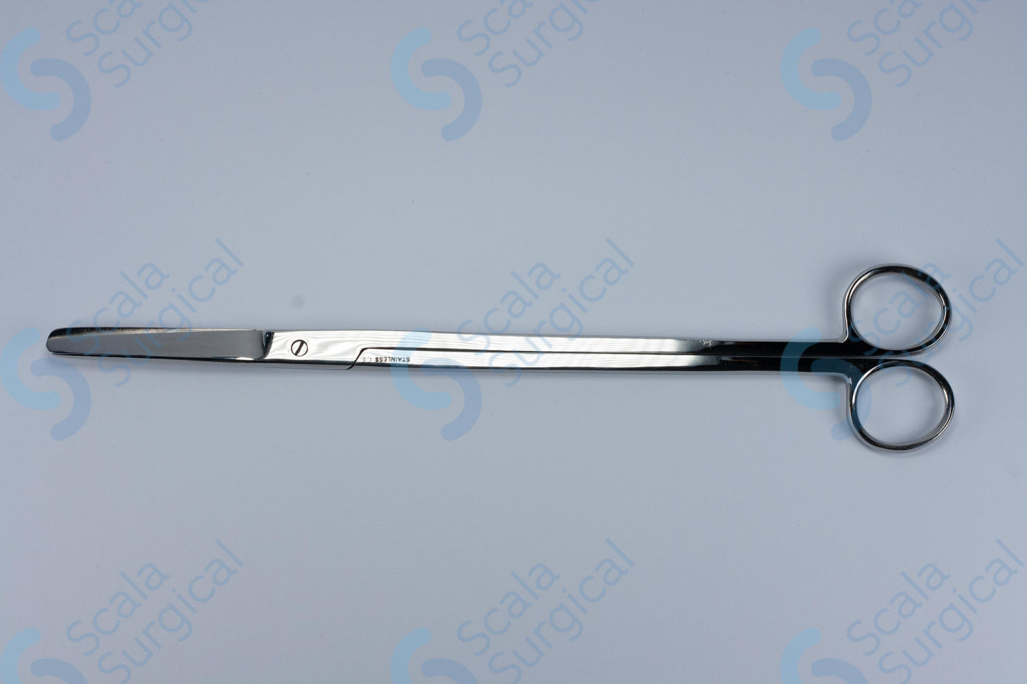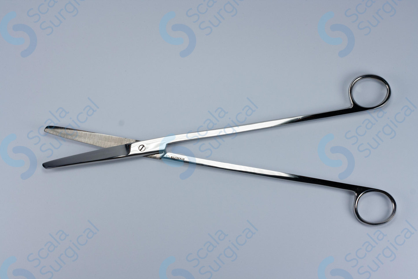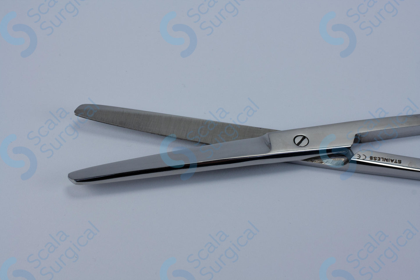 Dressing scissors blunt/blunt straight (254mm/10 inch) are used in the surgical field to cut through dressings, bandages, and other materials without cutting the skin. They are typically used to remove sutures, dressings, and other materials from the skin without causing damage.