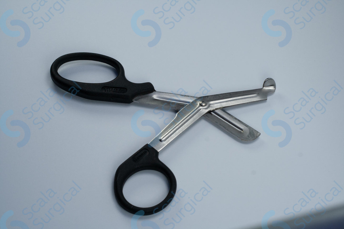 Universal Tough Cut Scissors Black Plastic Handle without Plastic Probe Angled to Side 7.5inch (190.5mm)