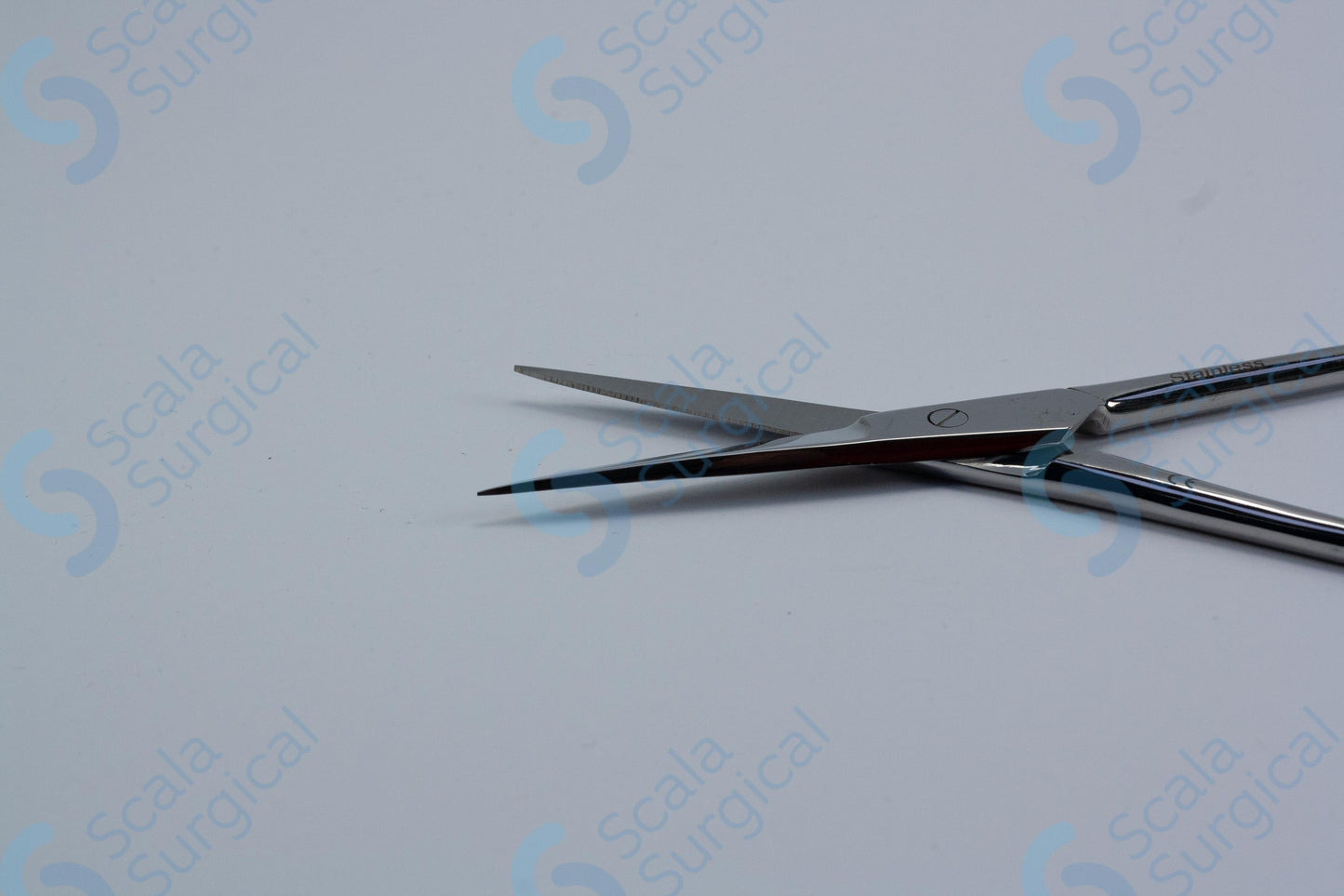 Dissecting scissors are used in surgical procedures to cut through tissue and other materials. They have sharp, pointed blades that are designed to cut cleanly and precisely. The open shanks and straight design of these scissors make them ideal for precision cutting and manipulating tissue during surgery.