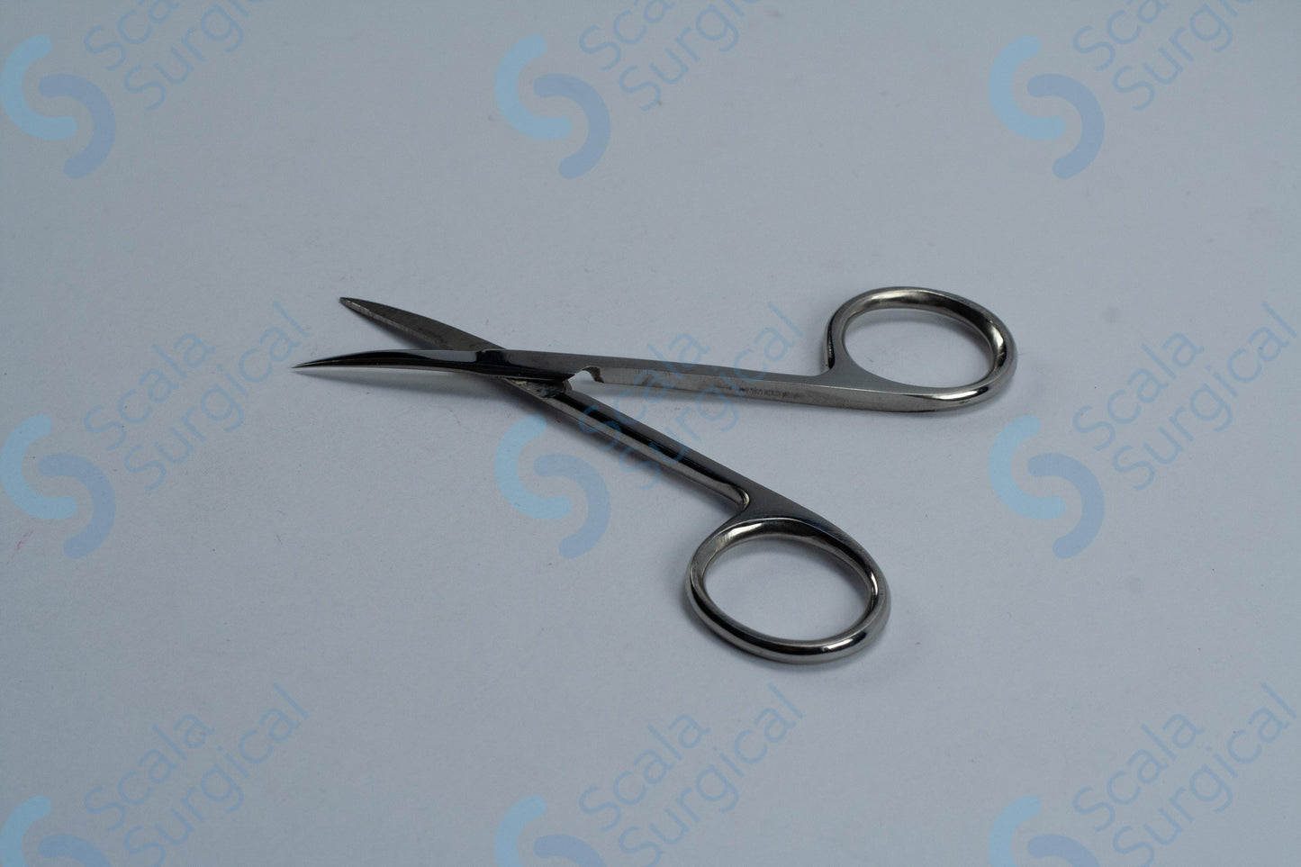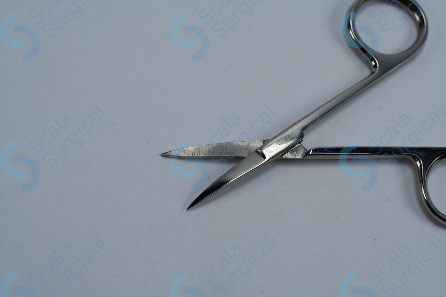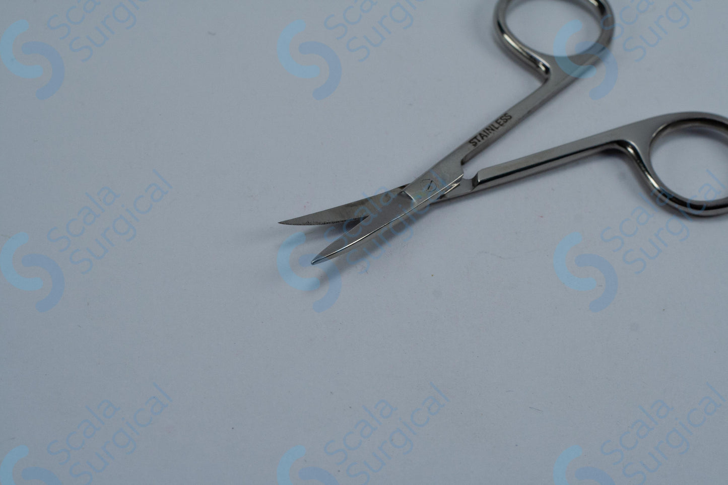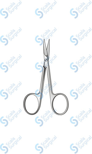 Cuticle scissors are used in the surgical field to trim and shape the cuticles of the skin. They are used to remove excess skin and to shape the cuticles of the skin around the nails. The curved screw joint of this particular scissors allows for precise trimming and cutting.