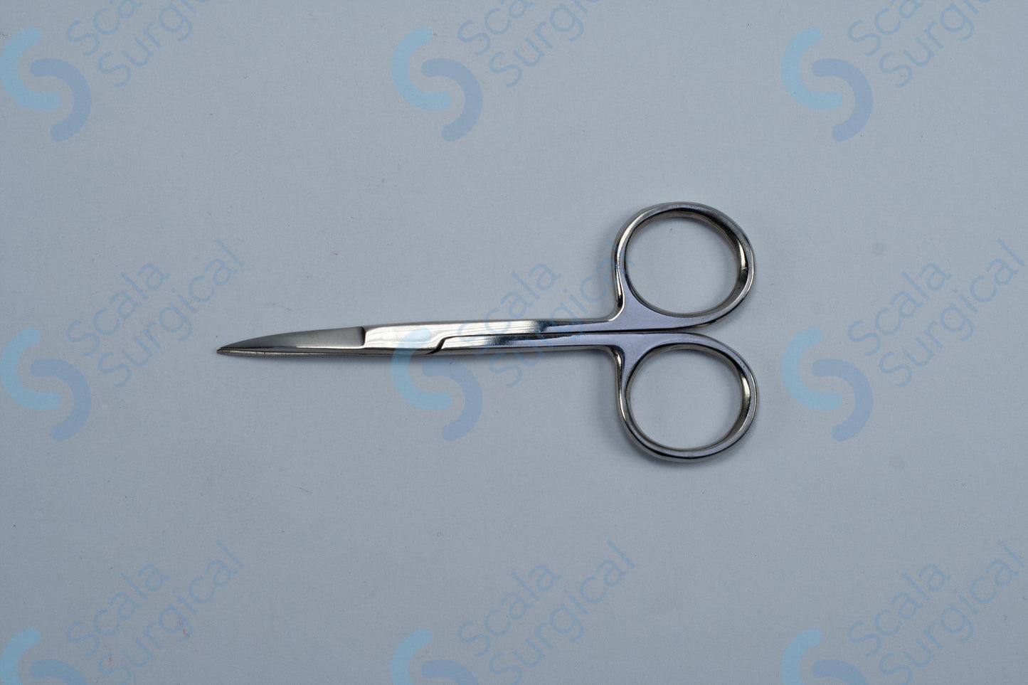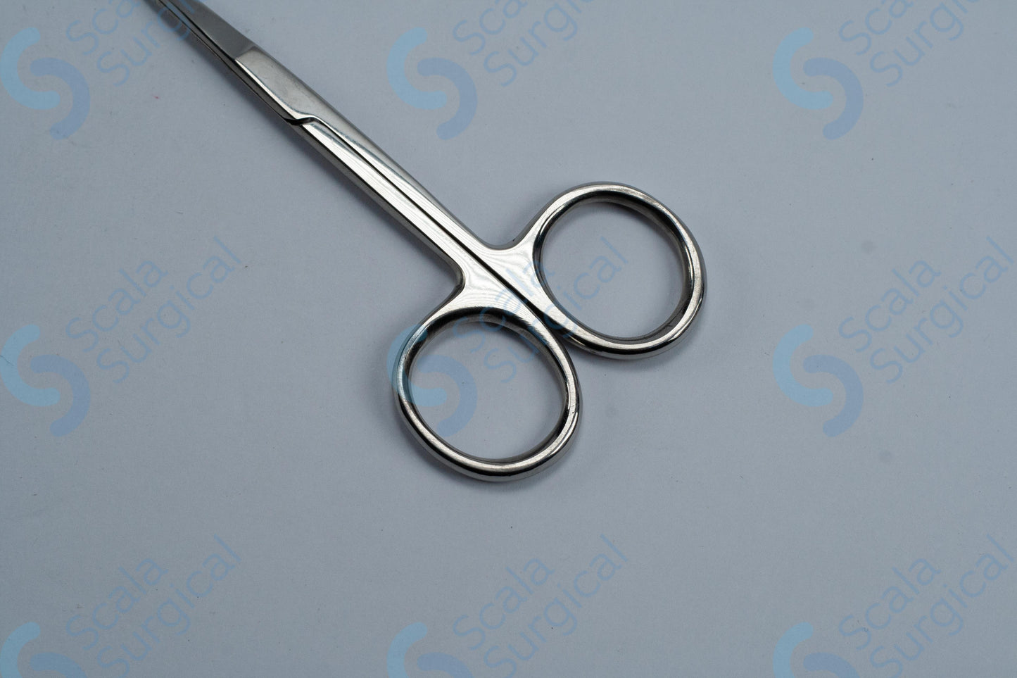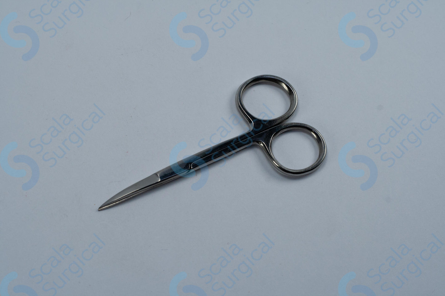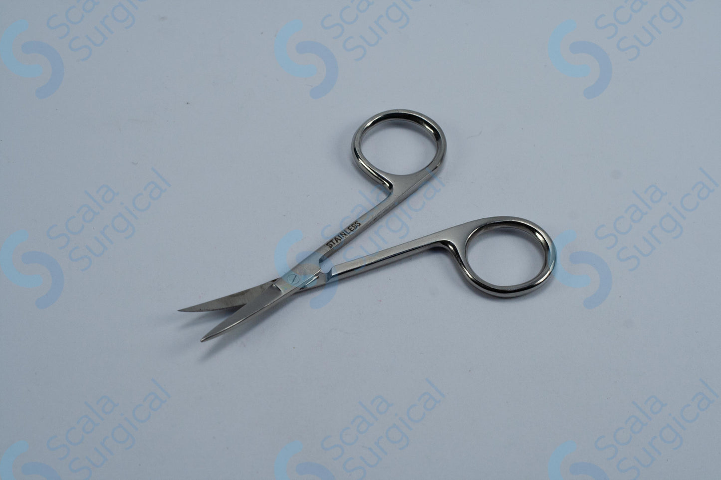 Cuticle scissors are used in the surgical field to trim and shape the cuticles of the skin. They are used to remove excess skin and to shape the cuticles of the skin around the nails. The curved screw joint of this particular scissors allows for precise trimming and cutting.