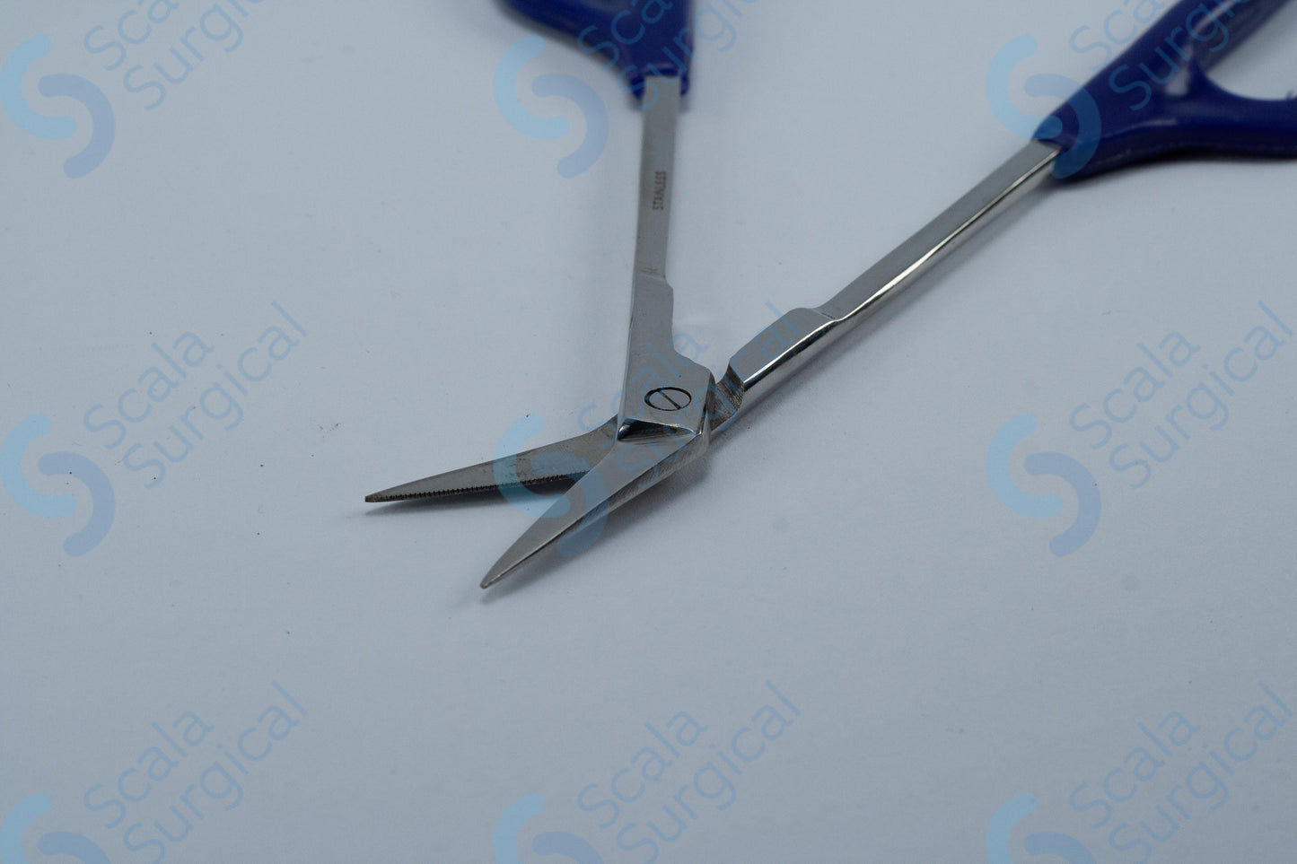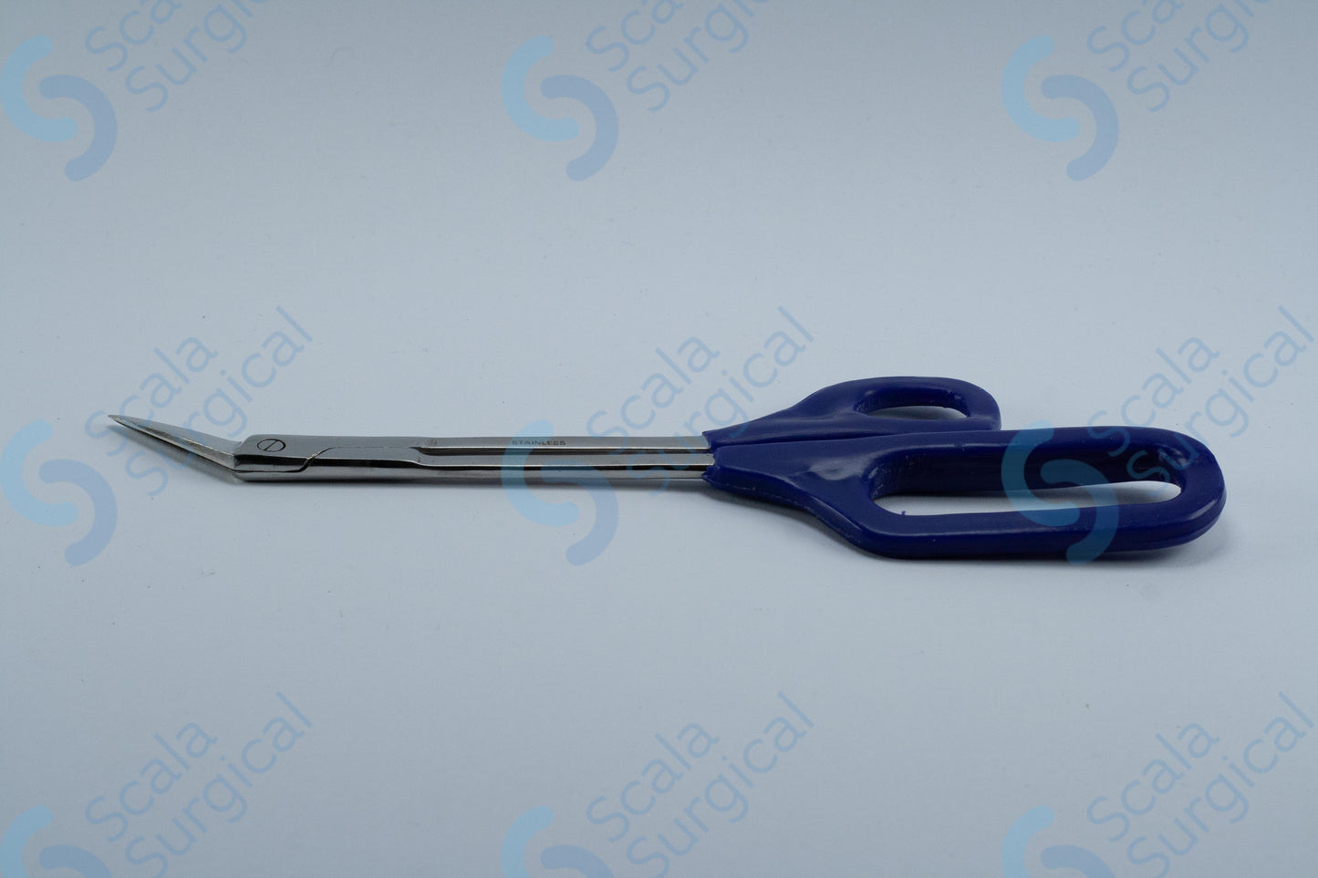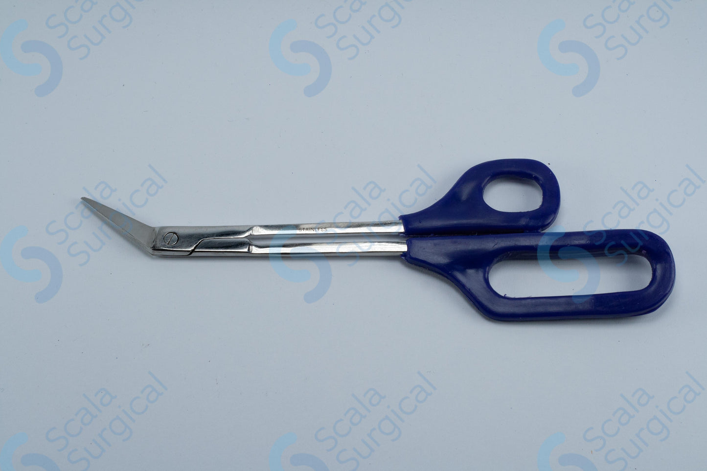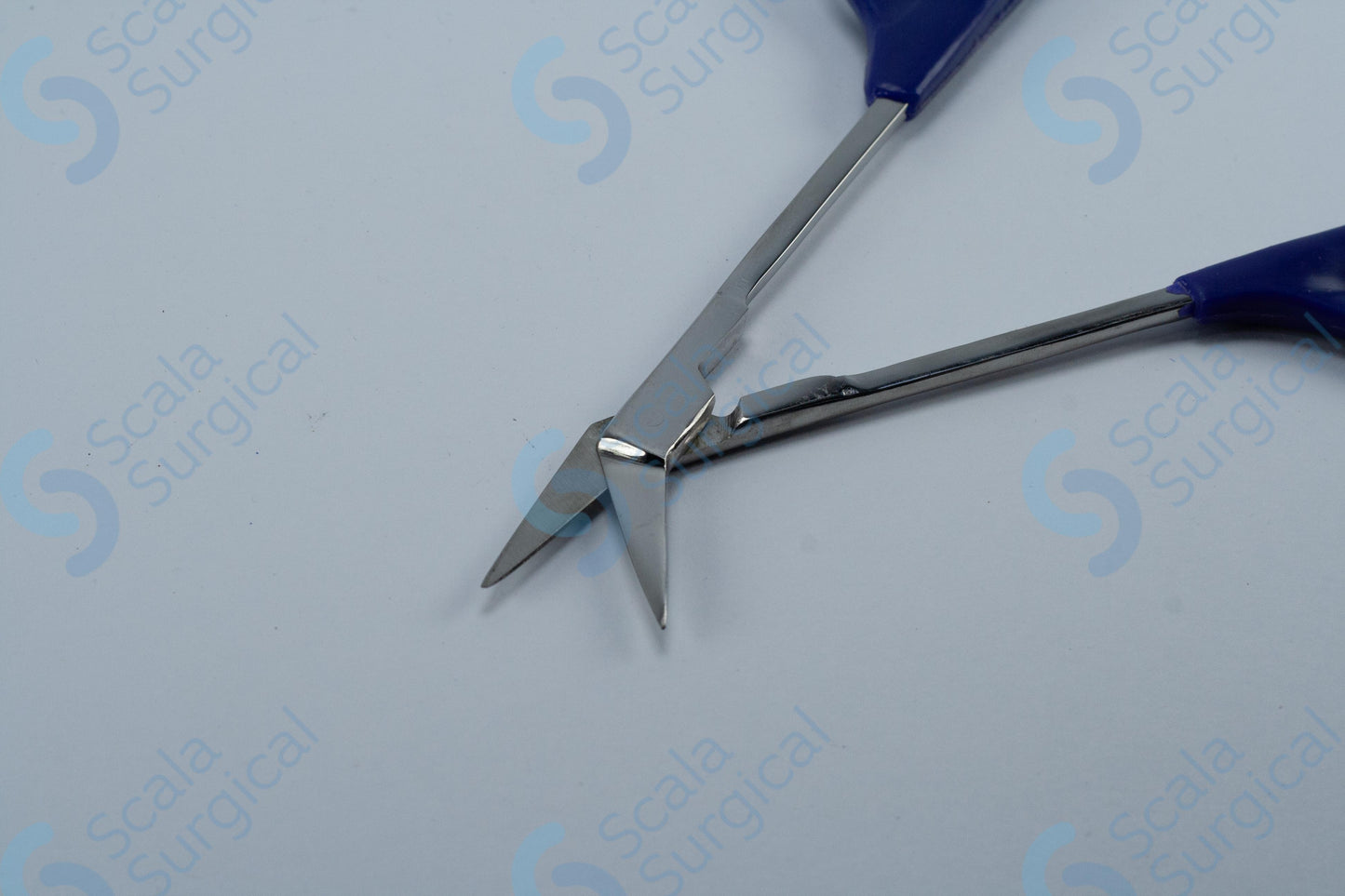 Toe nail scissors with plastic handles are used to trim and shape toenails during a surgical procedure. They can also be used to remove any ingrown toenails that may be present.