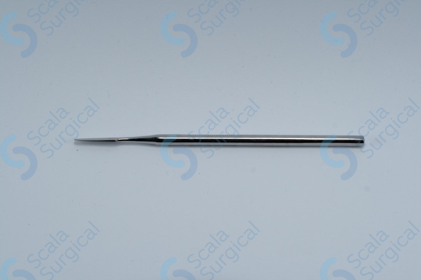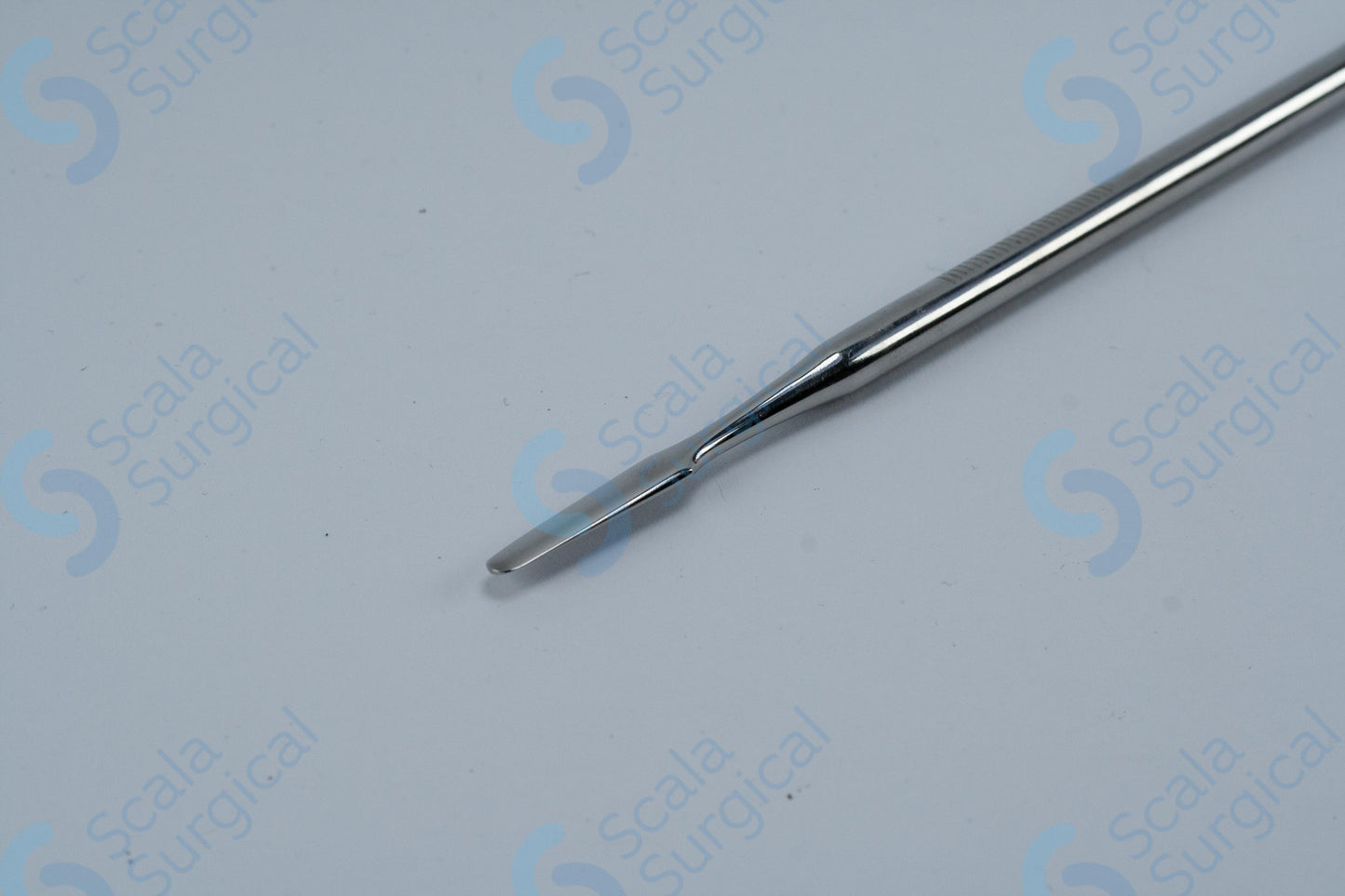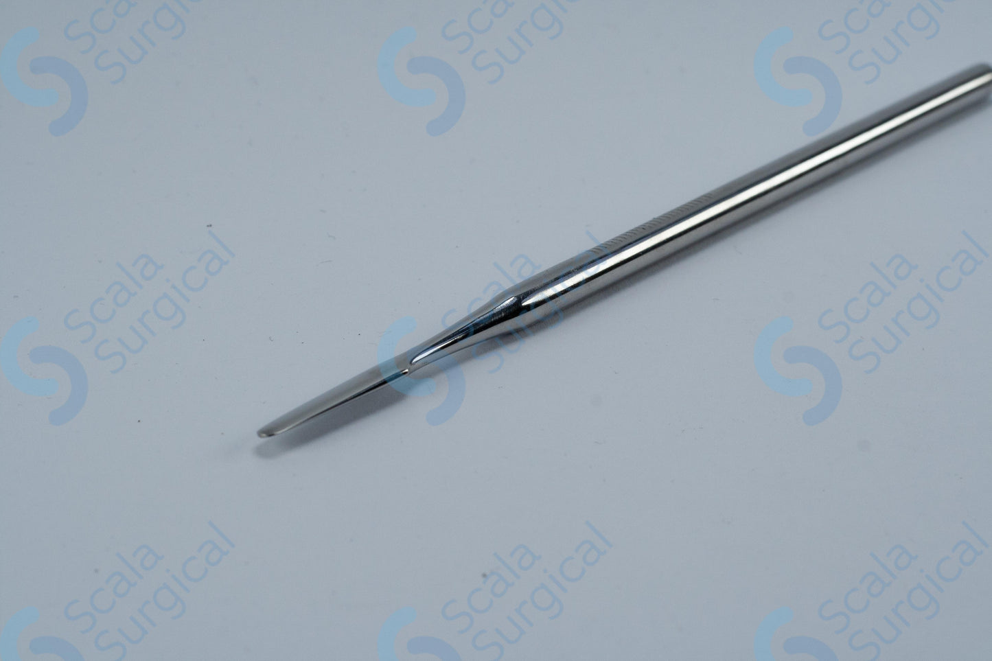 The Locke Nail Elevator Single Ended Small (127mm) (5 inch) is a surgical instrument used to elevate nails and other small objects during surgery. It is used to gently lift the nail from the surrounding tissue and can also be used to remove foreign objects from the body.