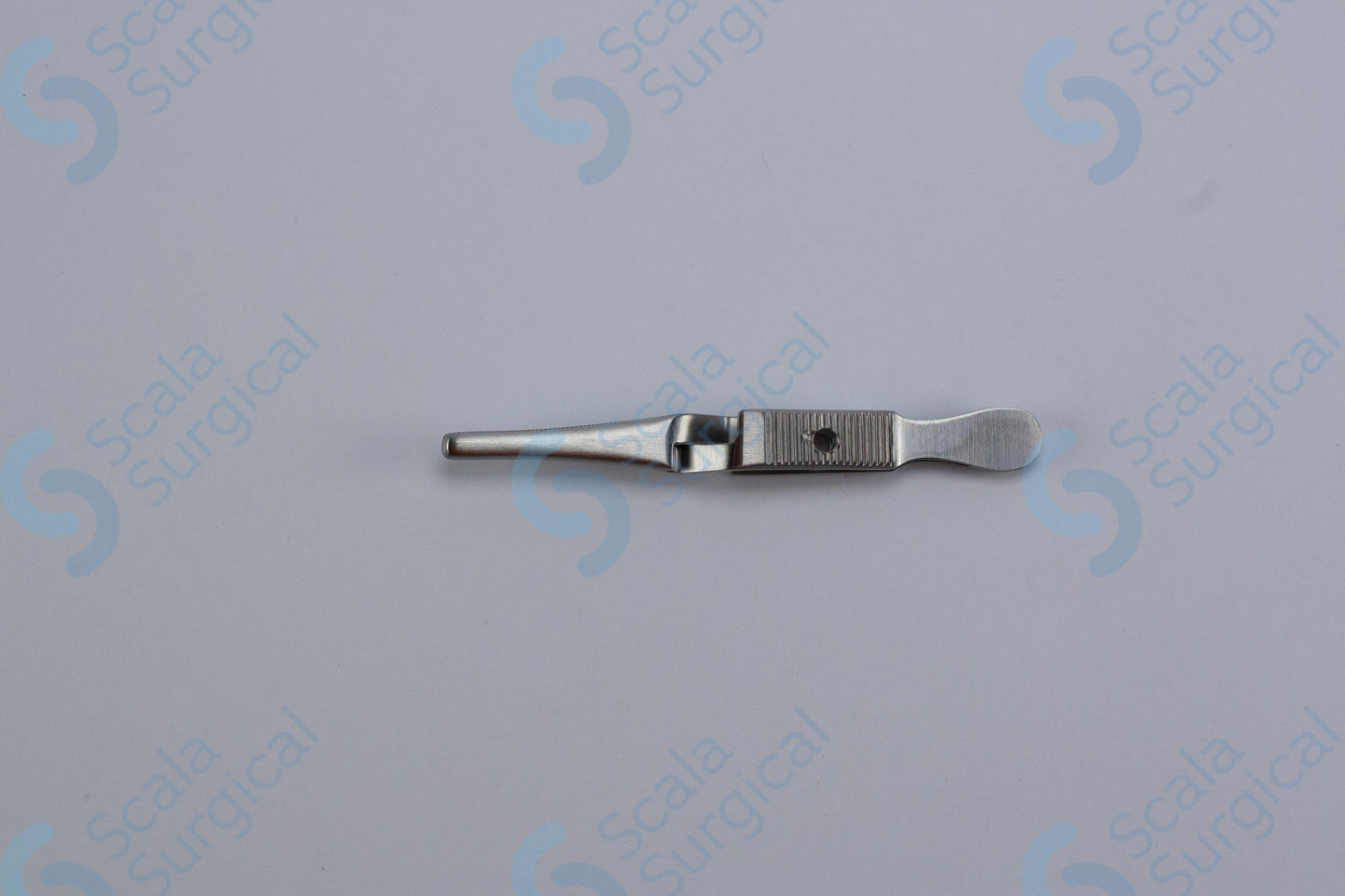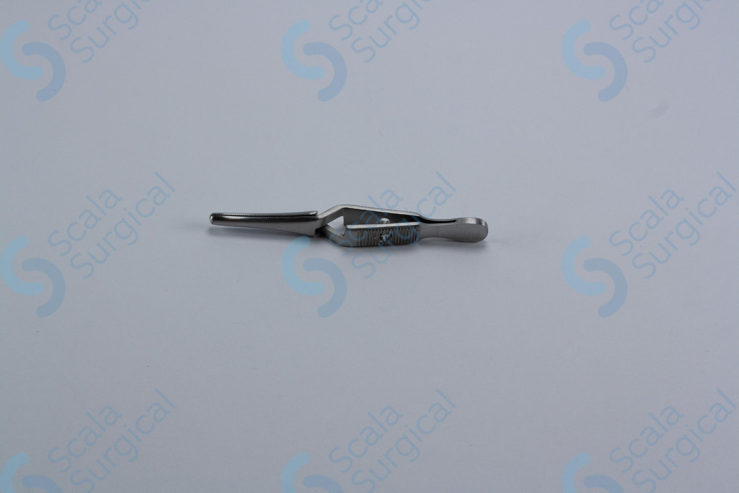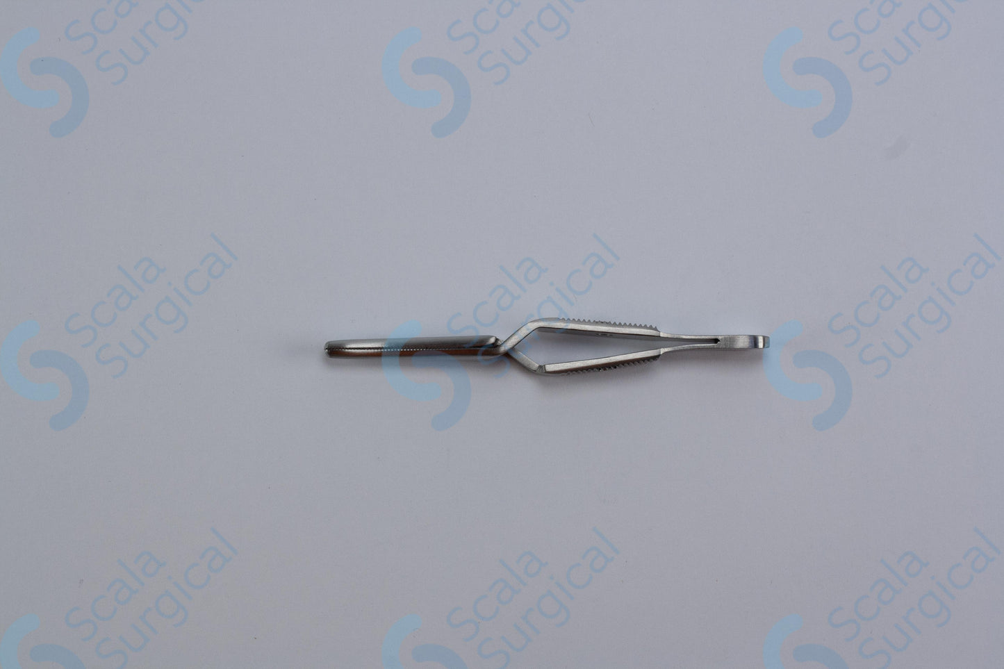 The Dieffenbach Artery Bulldog Clamp Horizontal Serrated Jaws Straight (69.85mm) (2? inch) is a surgical instrument used to clamp off and control bleeding from an artery during a surgical procedure.