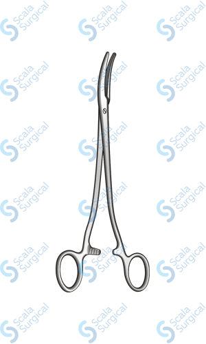 The Hamilton Bailey Artery Forceps with horizontal serrated jaws and a curved screw joint is a surgical instrument used to hold and manipulate tissue during surgery. It is typically used to clamp and hold blood vessels (arteries) in order to control bleeding. The 228.6mm (9 inch) size is commonly used in vascular and general surgery.