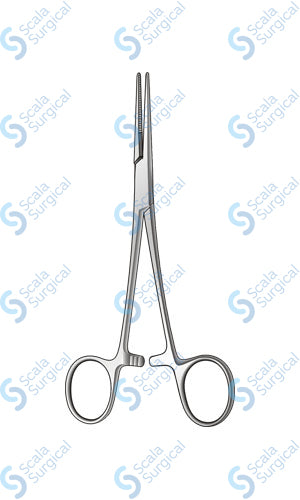This is a type of forceps used in surgery. It has half of the jaws with horizontal serrations, and is 158.75 mm long. It is used to grasp, hold, or manipulate tissue or organs during a surgical procedure.