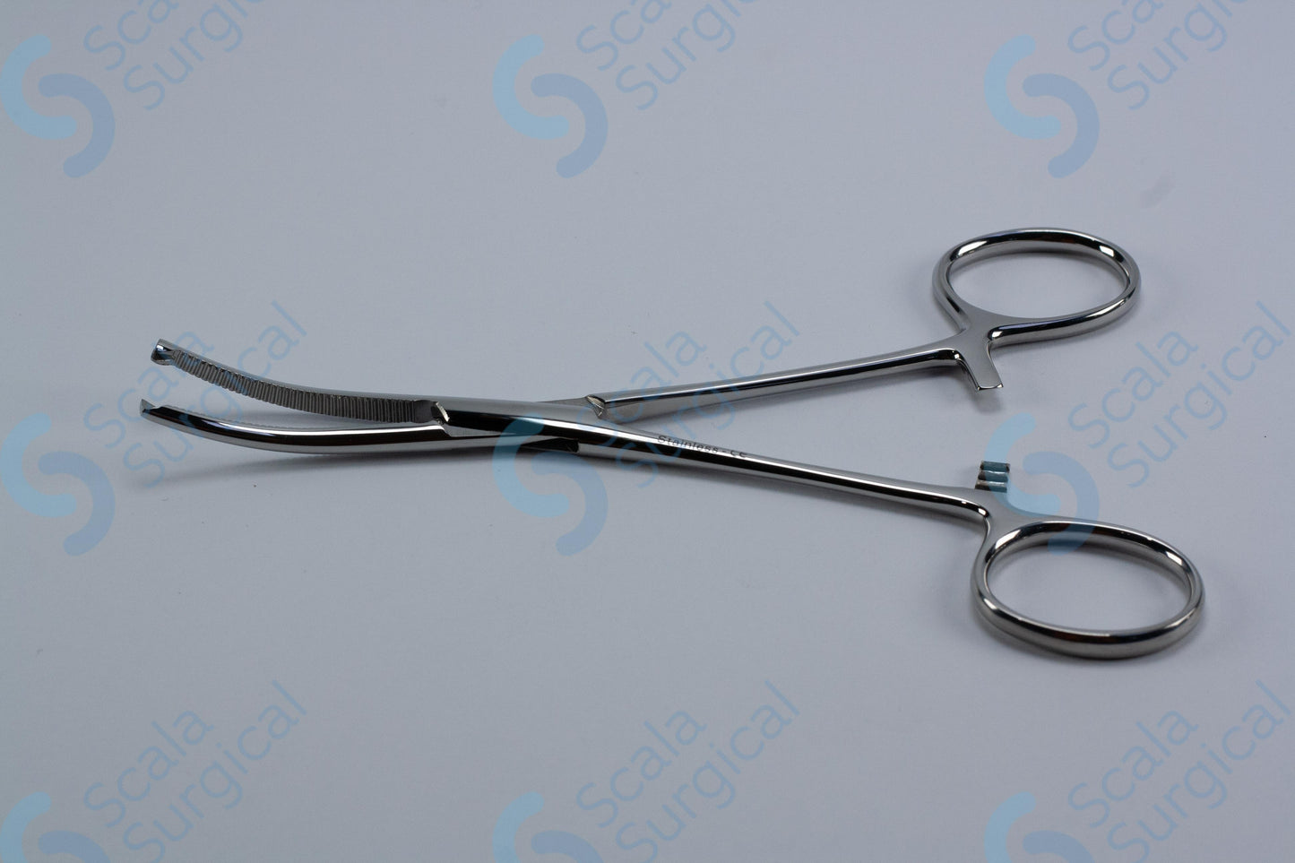 Kocher artery forceps are a type of surgical instrument used to clamp, hold, and manipulate tissue during surgical procedures. They are typically used to clamp vessels to stop bleeding and to help in the suturing process. The curved box joint allows for increased flexibility and comfort when handling the instrument. The horizontal serrated jaws provide a secure grip on tissue, and the 1 x 2 teeth provide a secure grip on larger vessels.