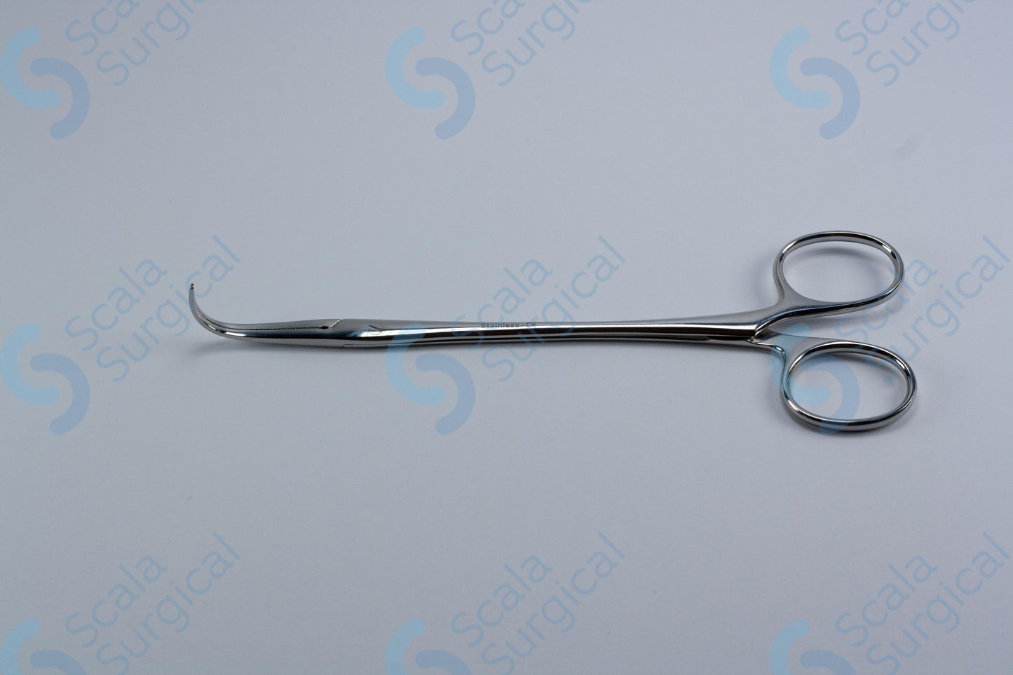 Negus Artery Forceps are used in the surgical field to grasp and hold blood vessels or other tissue during surgery. The horizontal serrated jaws and long curve of the forceps make it easier to access and manipulate the vessels, while the screw joint allows for secure closure and precise control.