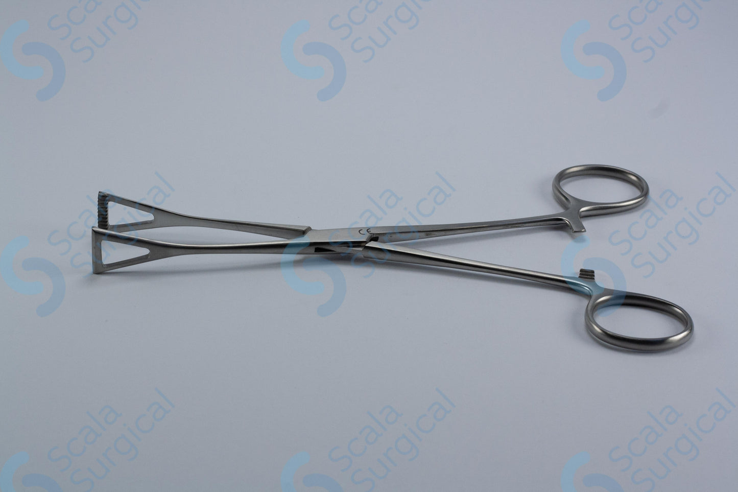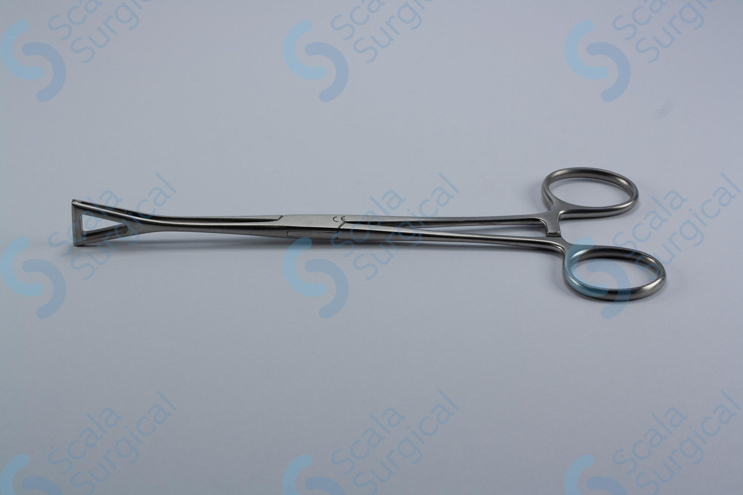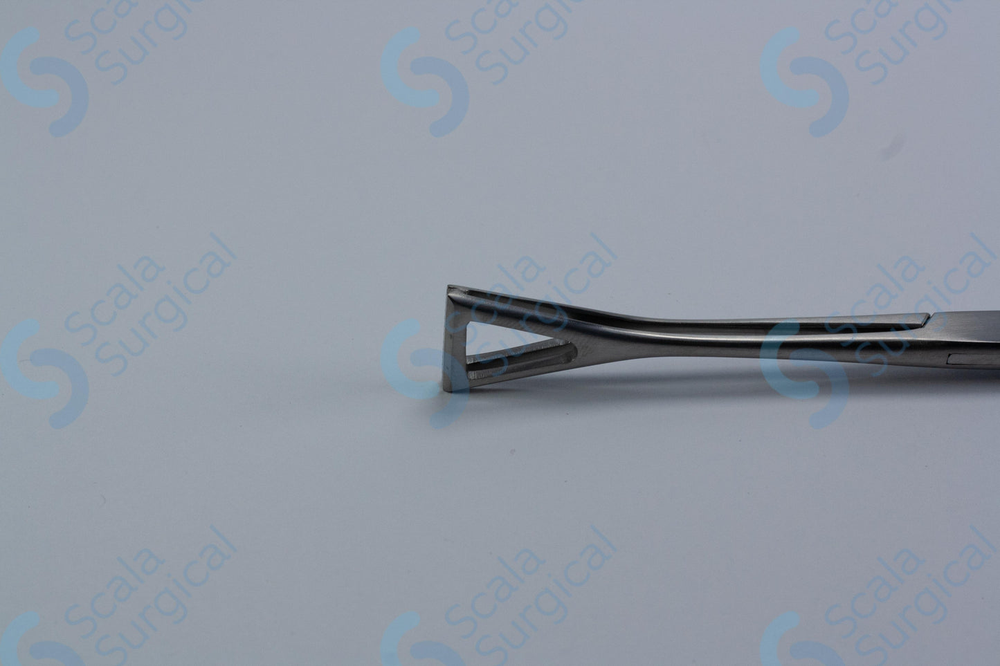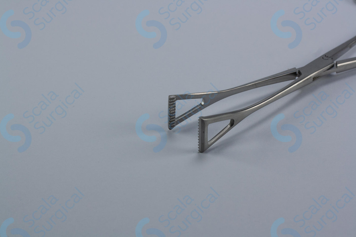 This is a type of forceps used in surgery. It is a triangular-shaped instrument with horizontal serrations on the jaws, and is 178mm long. It is used to grasp, hold, and manipulate tissue during surgical procedures.