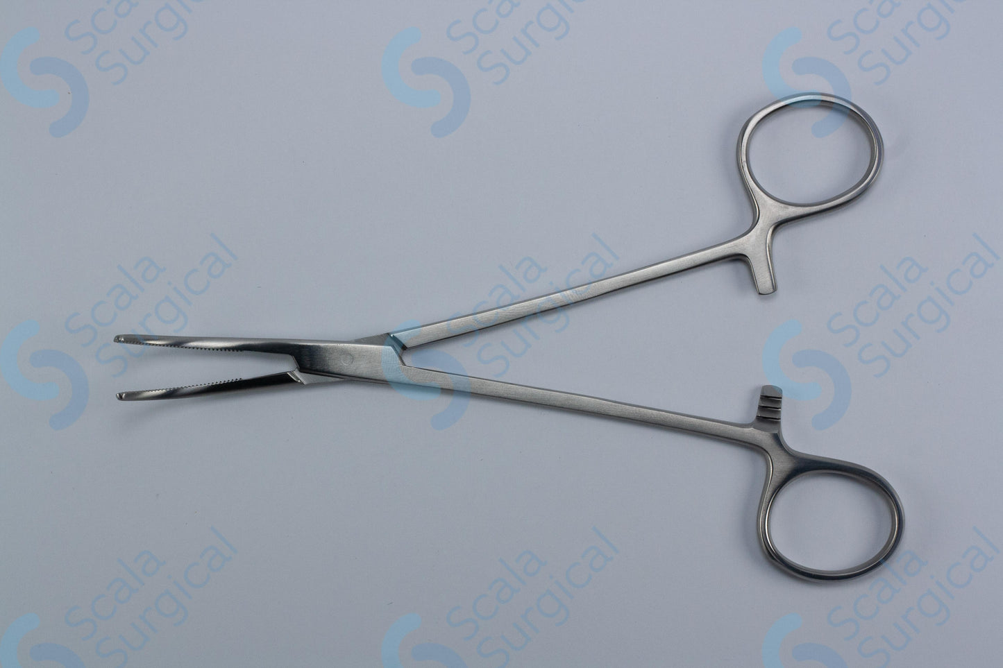 The Sawtell Artery Forceps Horizontal Serrated Jaws Curved Box Joint (177.8mm) (7 inch) is a surgical instrument used to clamp and hold blood vessels during surgery. It is commonly used in vascular, cardiac, and endovascular surgeries.