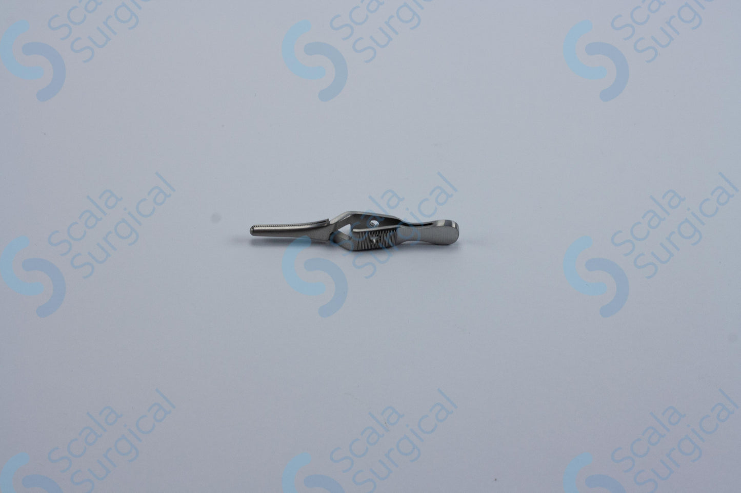 The Dieffenbach Artery Bulldog Clamp Horizontal Serrated Jaws Straight (48mm) is a surgical instrument used to clamp off blood vessels to control bleeding during surgery. It is typically used in vascular and cardiac surgery.