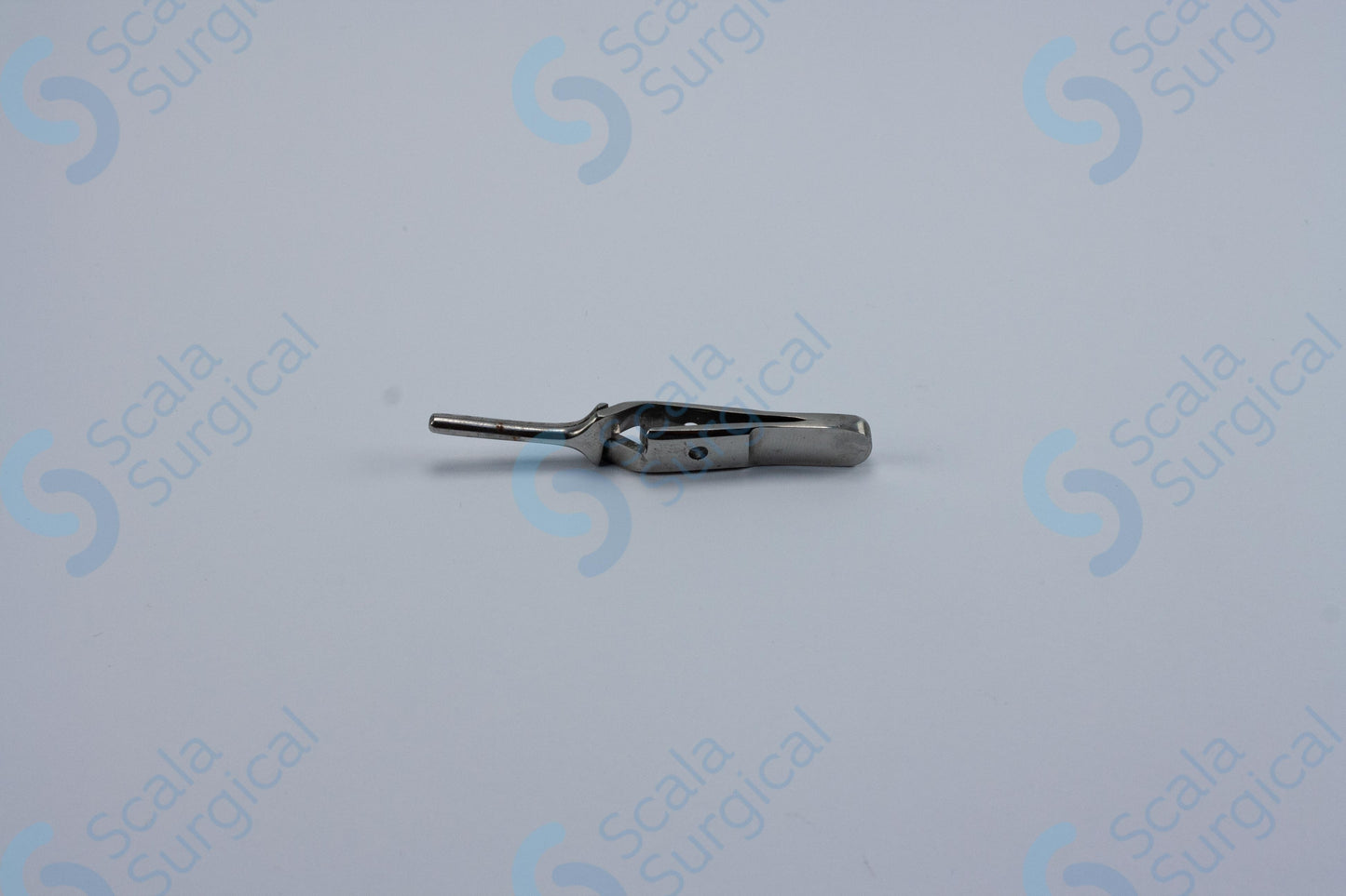 The John Hopkins Artery Bulldog Clamp Horizontal Serrated Jaws Curved (65mm) (2? inch) is a medical device used to clamp off an artery or blood vessel during a surgical procedure. It is designed to provide a secure grip on the vessel, allowing the surgeon to make a precise cut or repair. The serrated jaws and curved design help to ensure a secure grip on the vessel and prevent slipping or slipping away during the procedure.