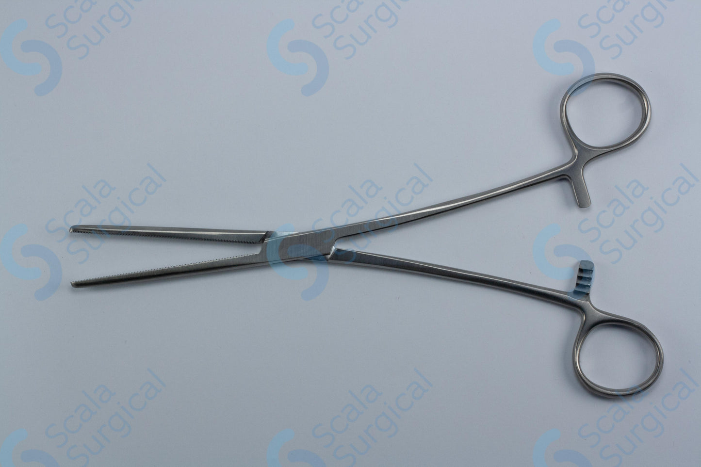Rochester-Pean Artery Forceps are a type of surgical instrument used to clamp or hold tissue during a surgical procedure. These forceps have horizontal serrated jaws and a straight box joint. They are typically 215mm (8? inch) in length. They are commonly used in vascular, cardiac, and thoracic surgeries.