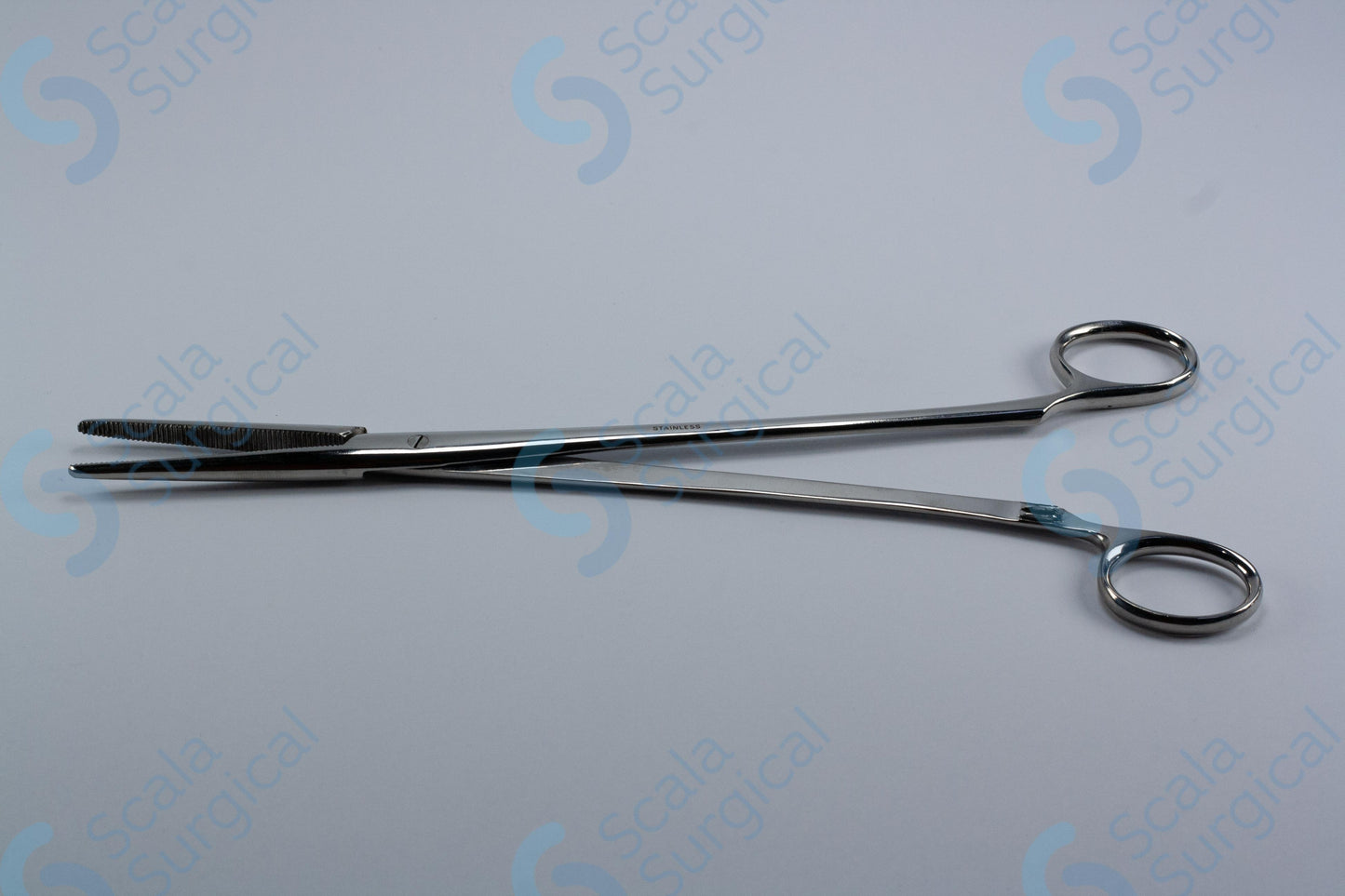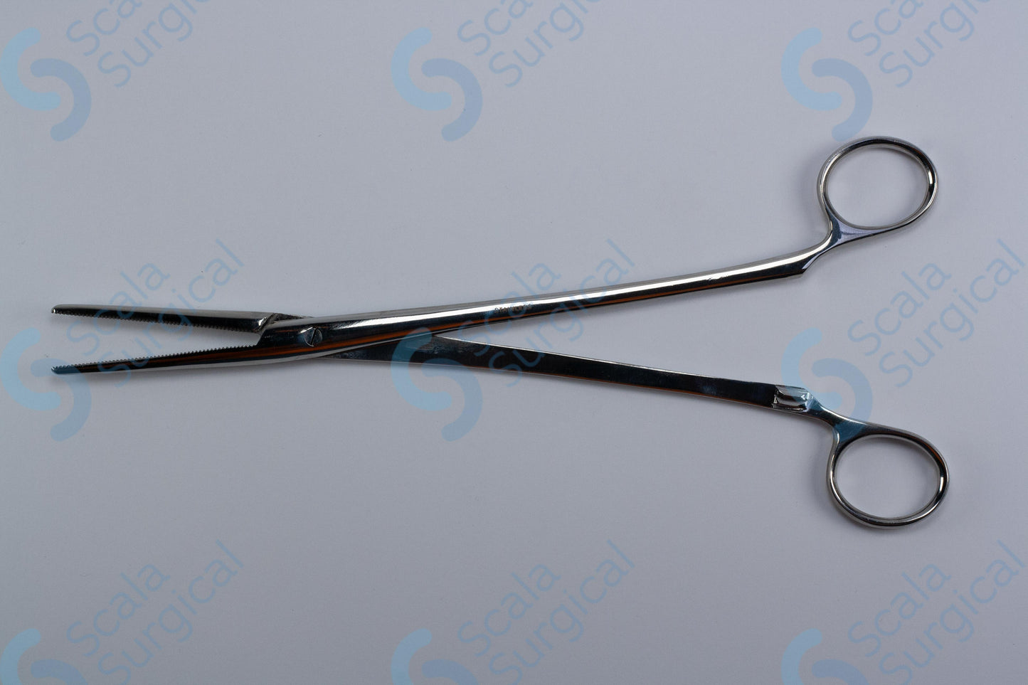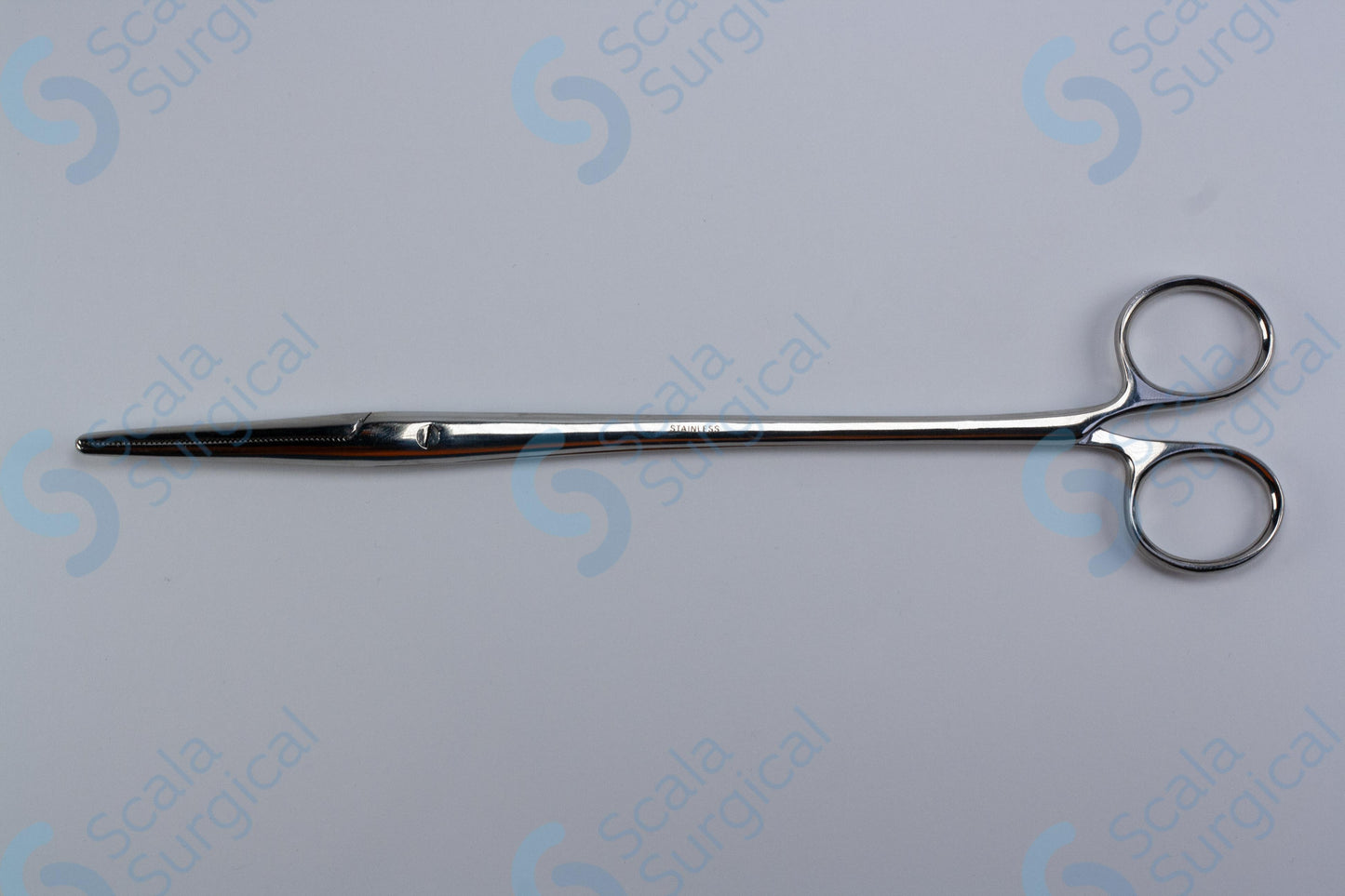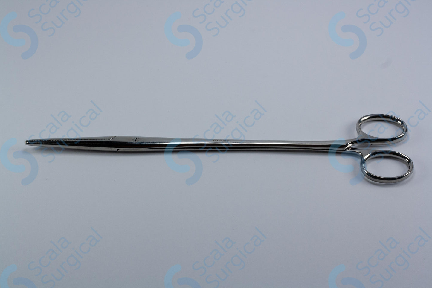 Spencer Wells Artery Forceps are surgical instruments used to clamp and hold blood vessels or other tissue during surgery. The horizontal serrated jaws and straight screw joint allow the instrument to be securely held in place while the surgeon works. The 234.9mm (9? inch) size is suitable for larger vessels and tissue.