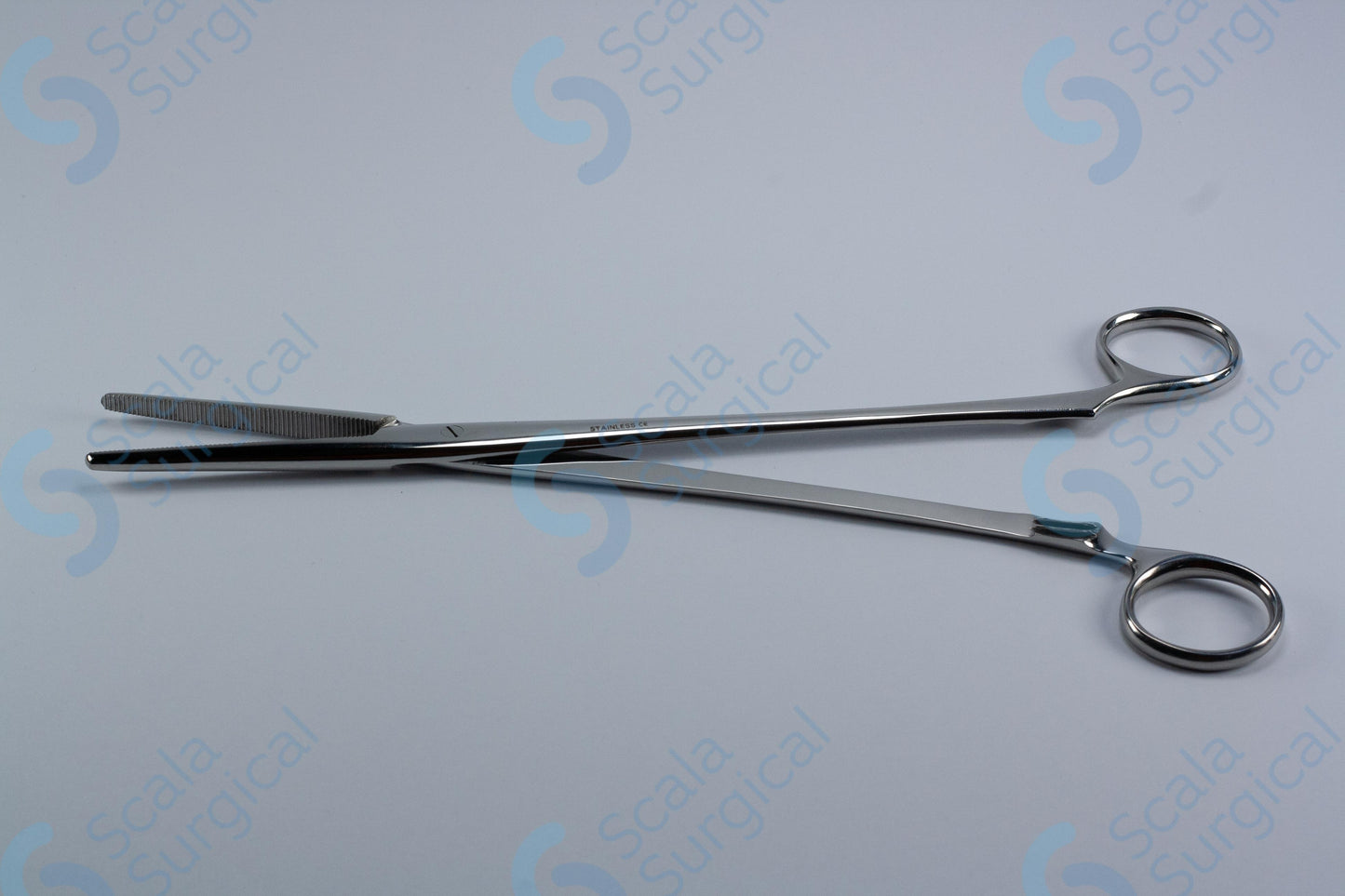 Spencer Wells Artery Forceps are used by surgeons to clamp and hold tissue and vessels during surgical procedures. The horizontal serrated jaws help to grip and hold tissue securely, while the straight screw joint allows for precise control when manipulating tissue. The 254mm (10 inch) size is ideal for use in general surgery.