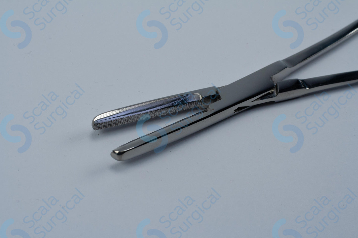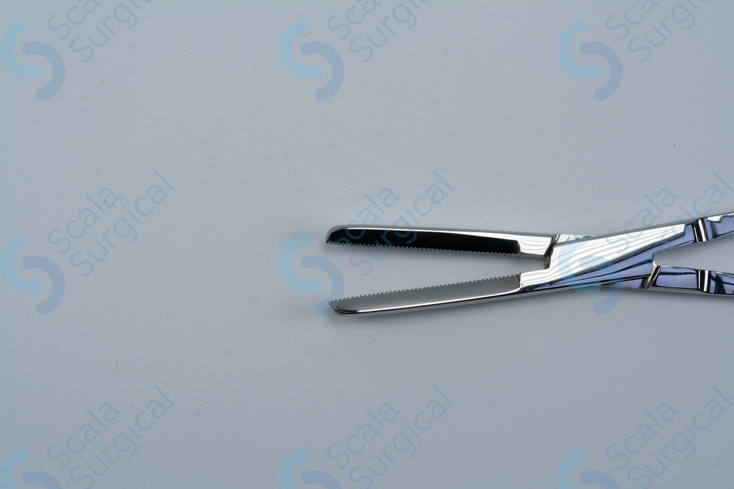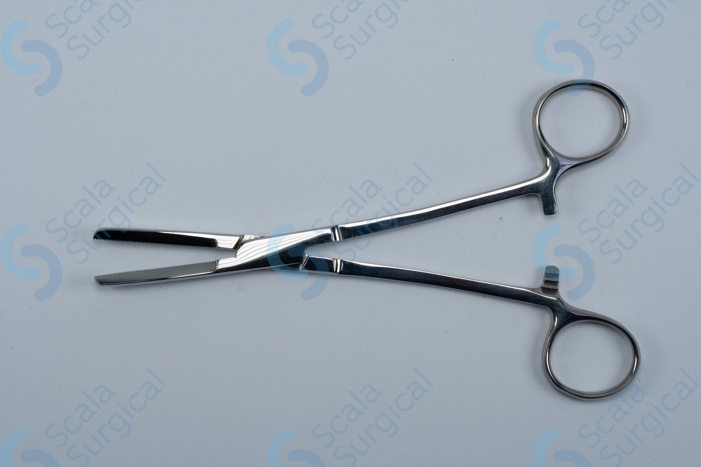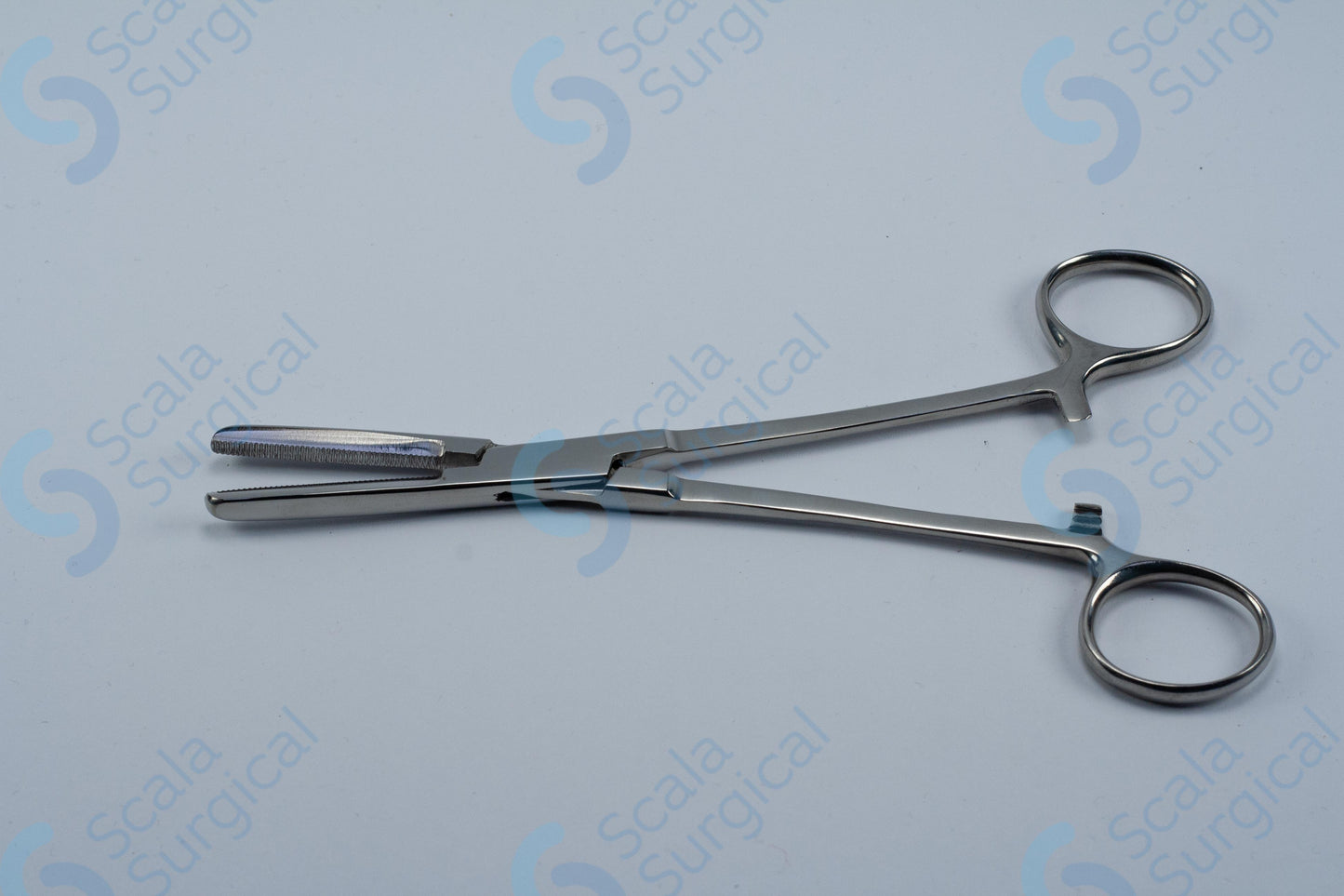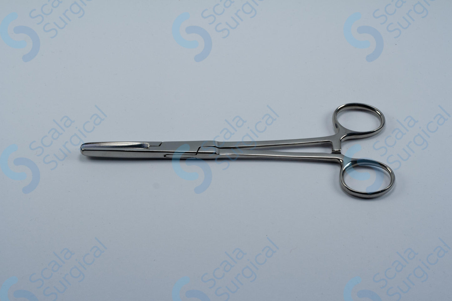 This item is used to clamp or secure tubing during a surgical procedure. The criss-cross serrated jaws and straight box joint provide a secure grip on the tubing, while the 171mm (6?inch) size ensures the tubing is securely held in place.