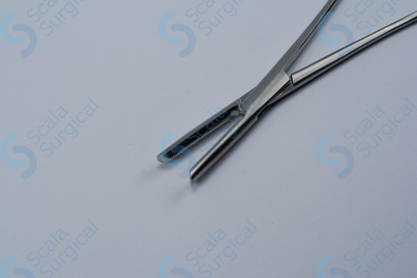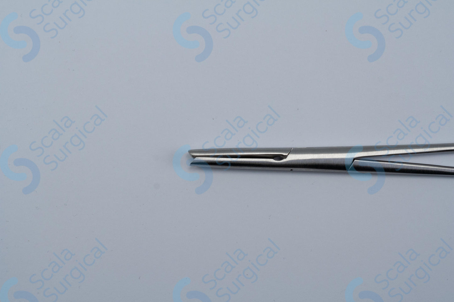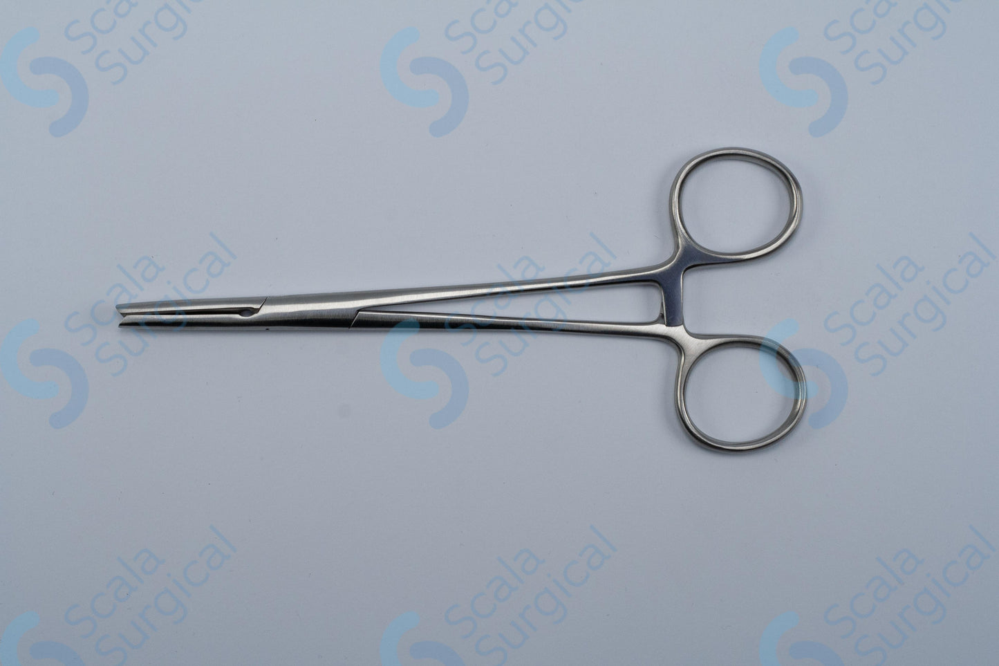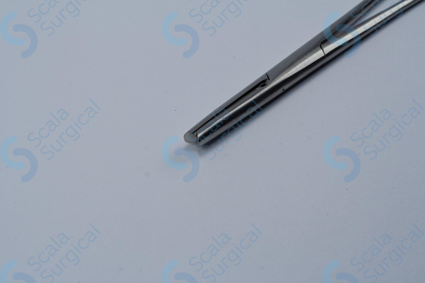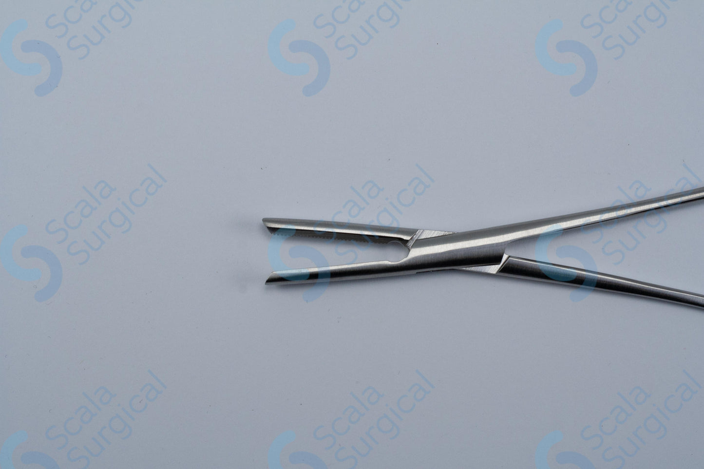 This tubing clamp is used to secure and seal tubing in a surgical setting. It is typically used for connecting two pieces of tubing, such as those used in medical devices, and helps to prevent leakage. The plain jaws are designed to fit securely and the box joint allows for a secure fit. The size of the clamp is 160mm (6?inch).