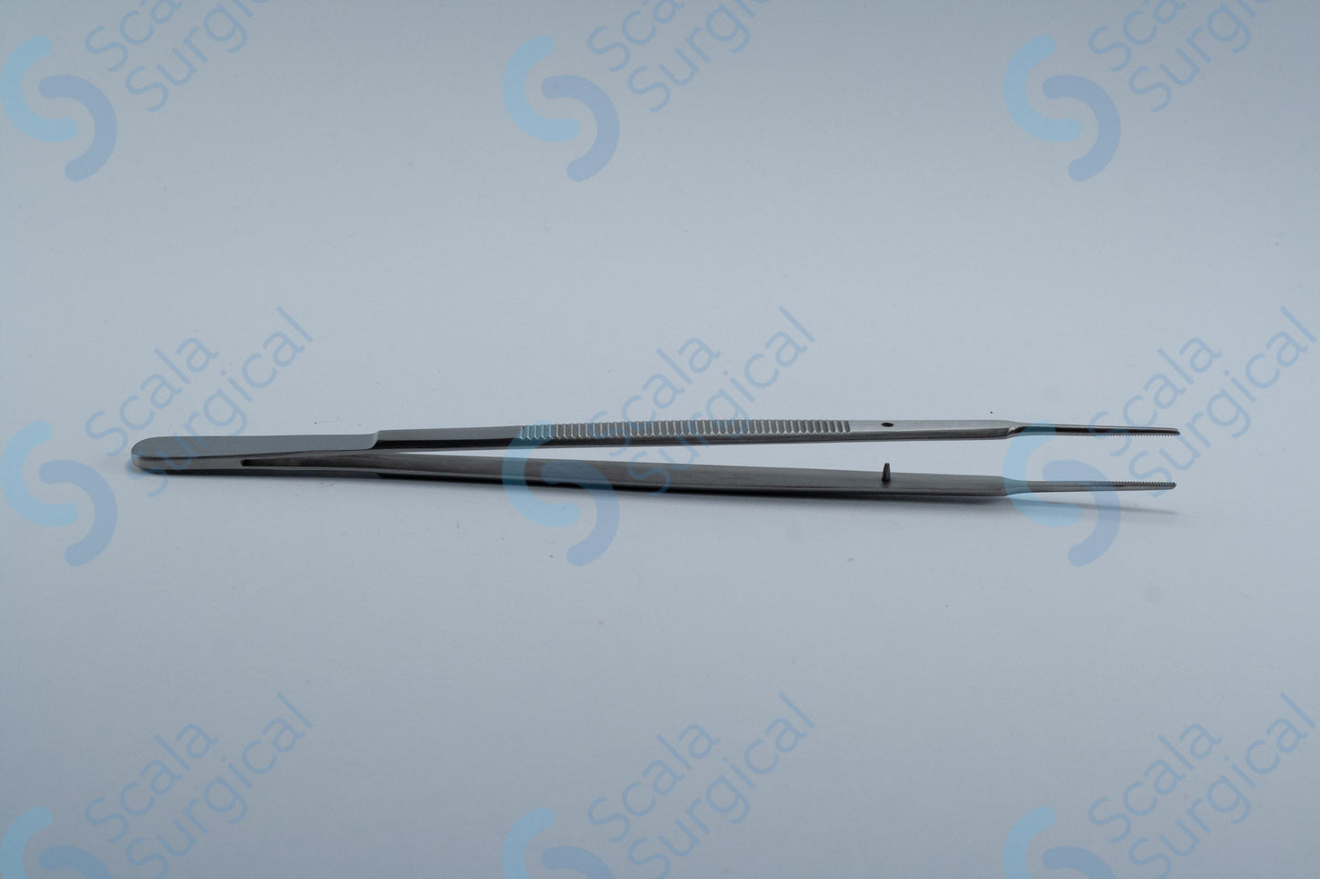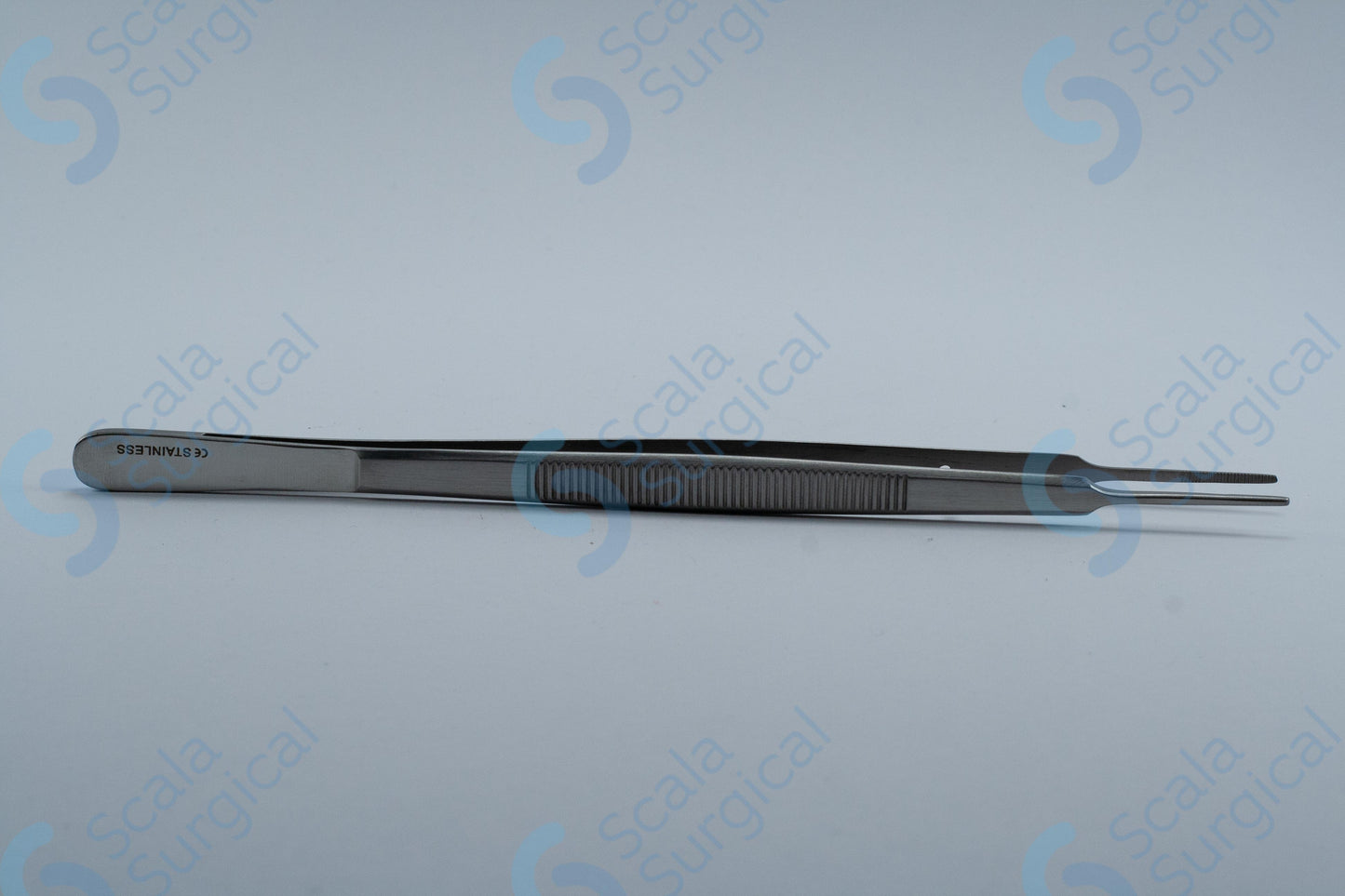 Gerald Dissecting Forceps Straight (177.5mm) is a surgical instrument used to hold and manipulate tissue during surgery. The forceps are designed with two sharpened blades that can be used to dissect and separate tissue, as well as to cut sutures and hold tissue in place.