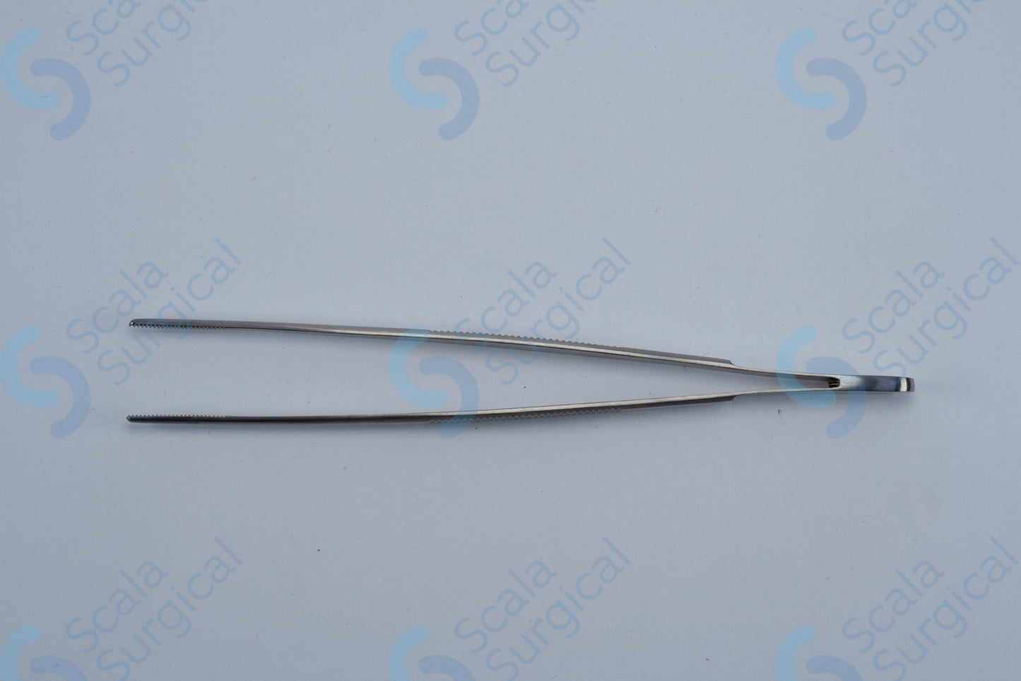 This item is a pair of surgical forceps used to grasp and hold tissue during surgical procedures. The medium points and serrated jaws provide a secure grip on tissue and the handle makes it easier to maneuver the forceps.
