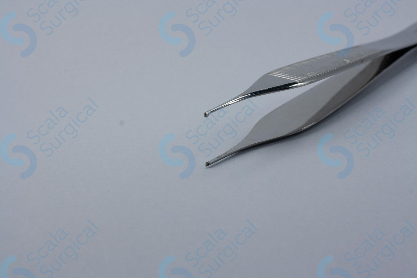 The Micro Adson Dissecting and Tissue Forceps 1 x 2 Teeth Straight (127mm) (5 inch) is a surgical instrument used to hold, grasp, and manipulate tissue during a surgical procedure. It is commonly used to hold and manipulate tissue during suturing and dissection.