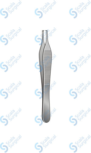 Adson Dissecting and Tissue Forceps Serrated Jaws Straight (177.8mm) (7 inch) are surgical instruments used for grasping, holding, and manipulating tissue during surgical procedures. They are commonly used to hold tissue during suturing, to dissect and remove tissue, and to hold tissue during cauterization.