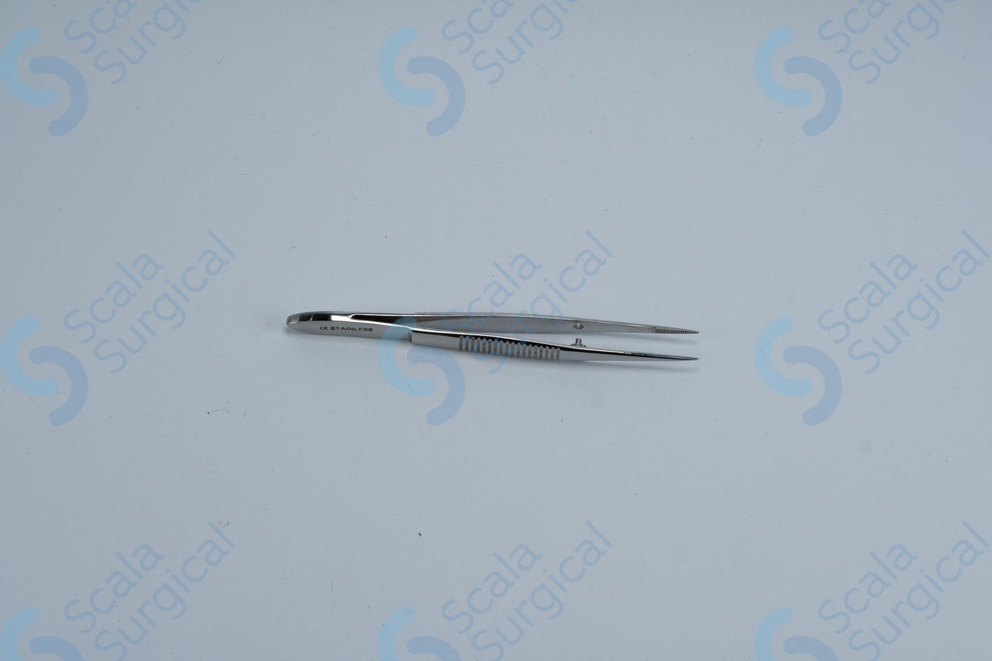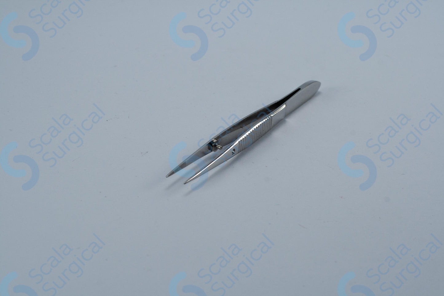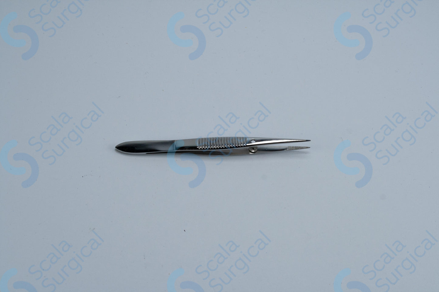 Dissecting and tissue forceps are used in the surgical field to grasp and hold tissue or organs during surgical procedures. The fine pointed straight forceps with guide pin are designed to provide precise control and manipulation of delicate tissue. The 90mm (3?inch) size is ideal for smaller surgical procedures.