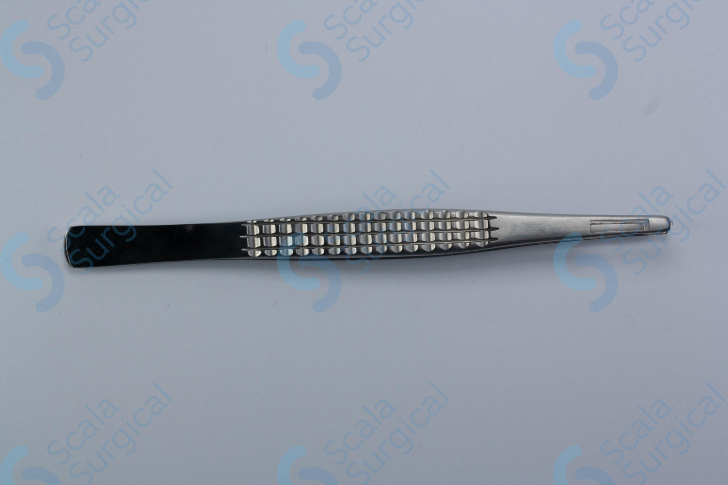 Charnley Dissecting and Tissue Forceps Straight With Shutter and Slot (177.8mm) (7 inch) is a surgical instrument used to grasp and hold tissue during surgical procedures. The forceps have a shutter and slot to help hold tissue in place and allow for precise manipulation. The forceps are also commonly used to dissect tissue and remove small pieces of tissue.