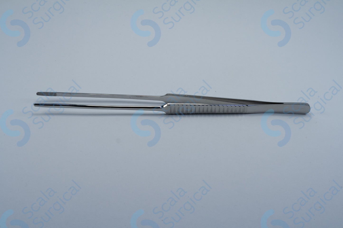 Emmet Dissecting and Tissue Forceps Serrated Jaws (254mm) (10 inch) is a type of surgical instrument used to grasp, hold, and manipulate tissue during surgical procedures. It can be used to hold and dissect tissue, as well as to apply pressure to control bleeding.