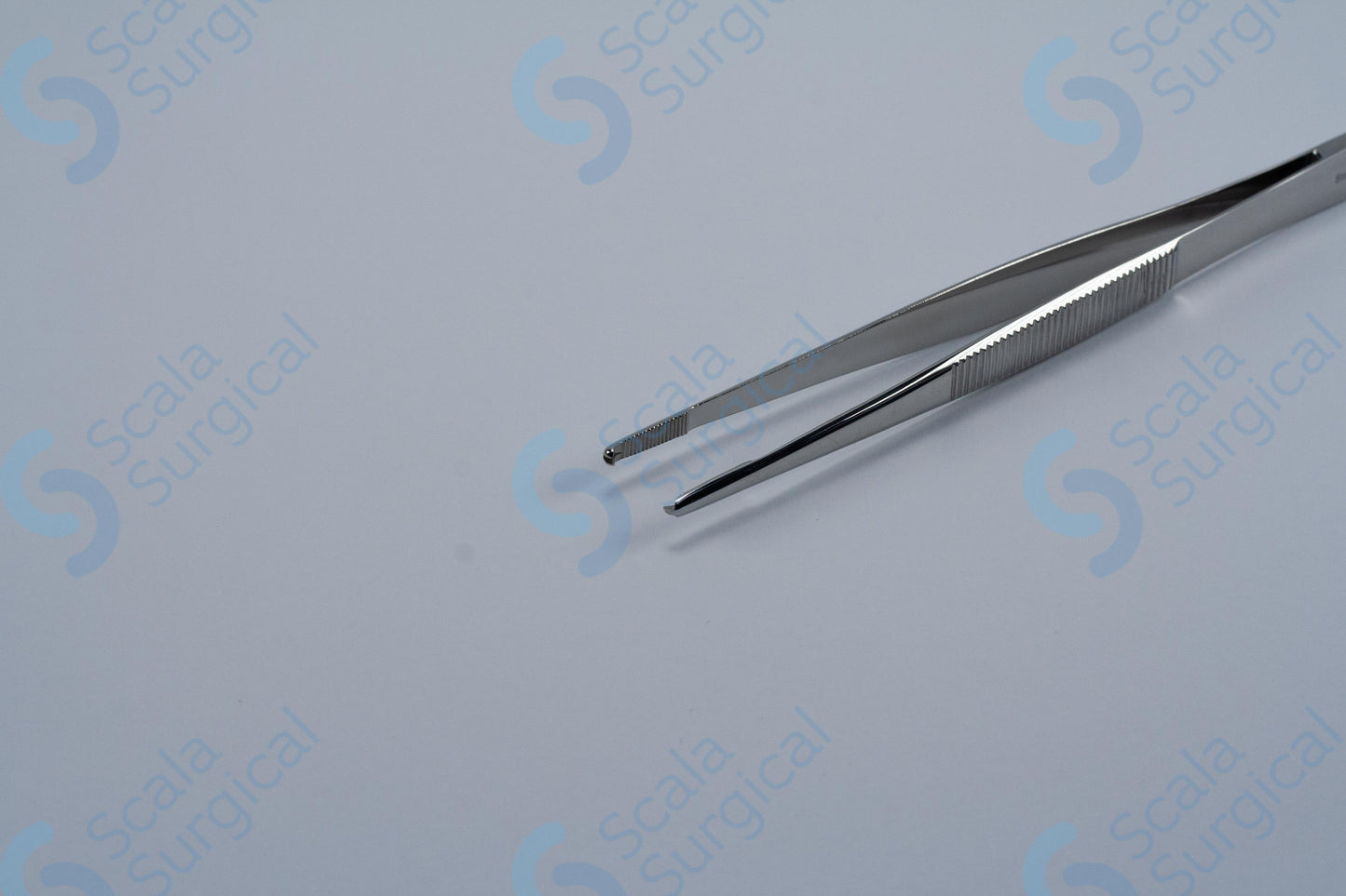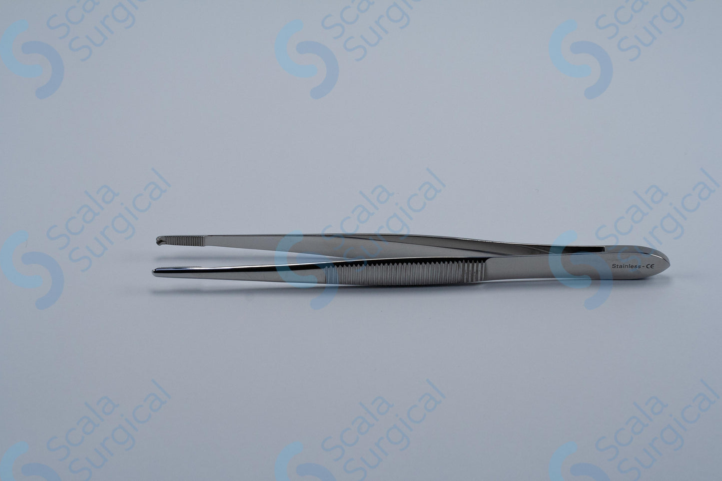 The Jackson Burrows Dissecting and Tissue Forceps is a surgical instrument used to hold and manipulate tissue during surgical procedures. The serrated jaws allow for a secure grip on tissue and the 1 x 2 teeth provide additional grip. The 139.7mm (5? inch) size is suitable for a variety of procedures.