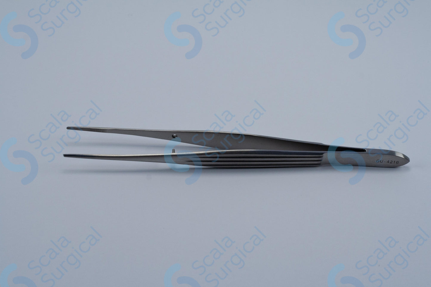 McIndoe Dissecting and Tissue Forceps Serrated Jaws (152.4mm) (6 inch) is a surgical tool used to hold, grasp, and manipulate tissue during surgery. The serrated jaws provide a secure grip and the forceps can be used to hold tissue in place while cutting or suturing.