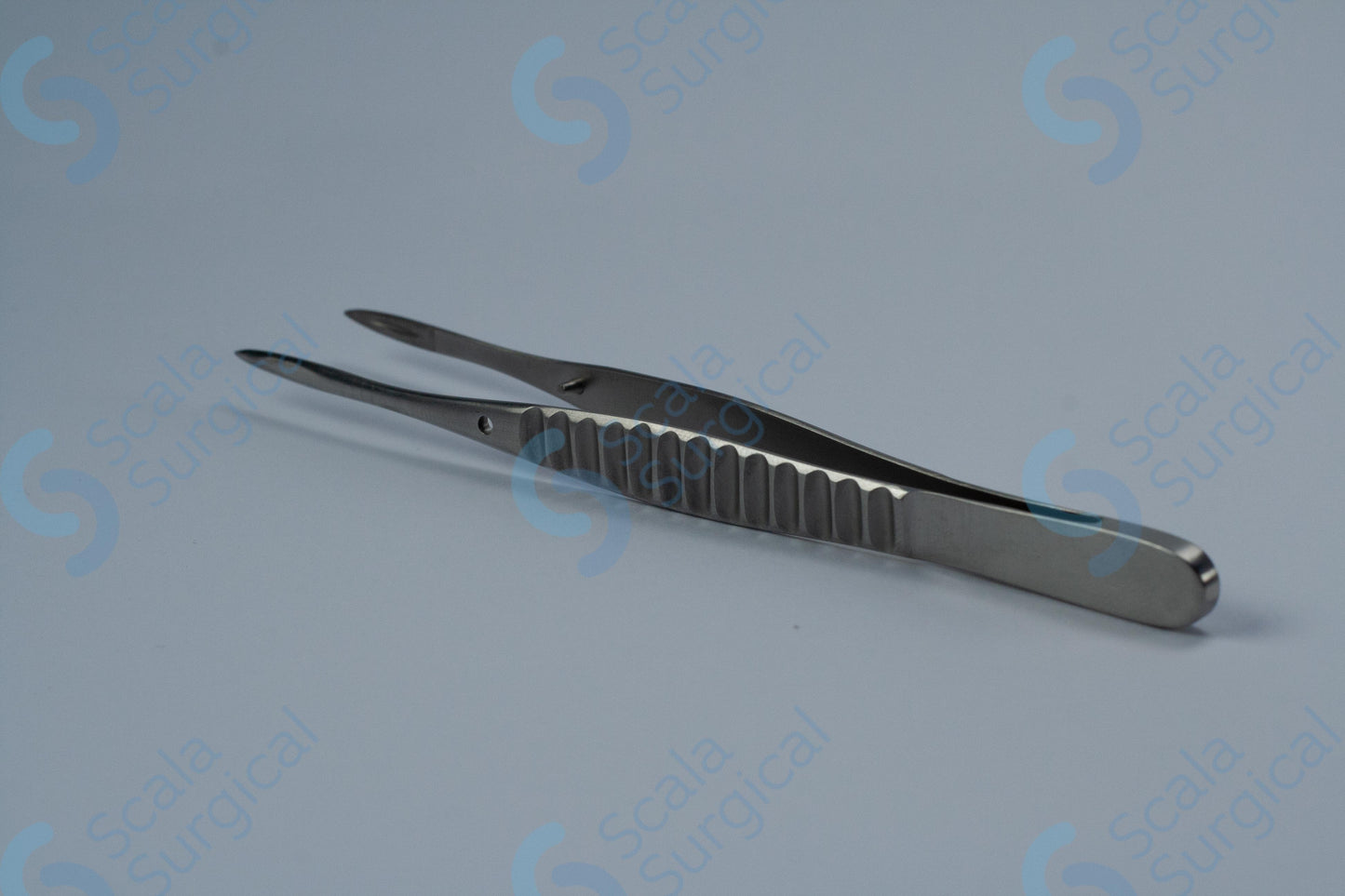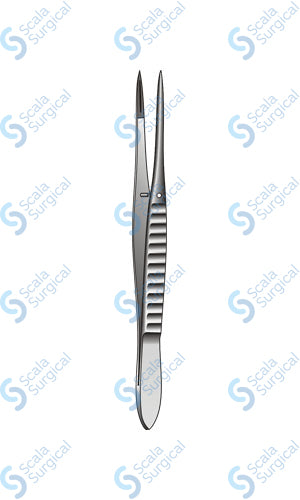 These forceps are used by ophthalmologists and surgeons to delicately dissect and hold tissue during ocular surgery. They are designed to provide a firm grip on delicate tissue without causing any damage.